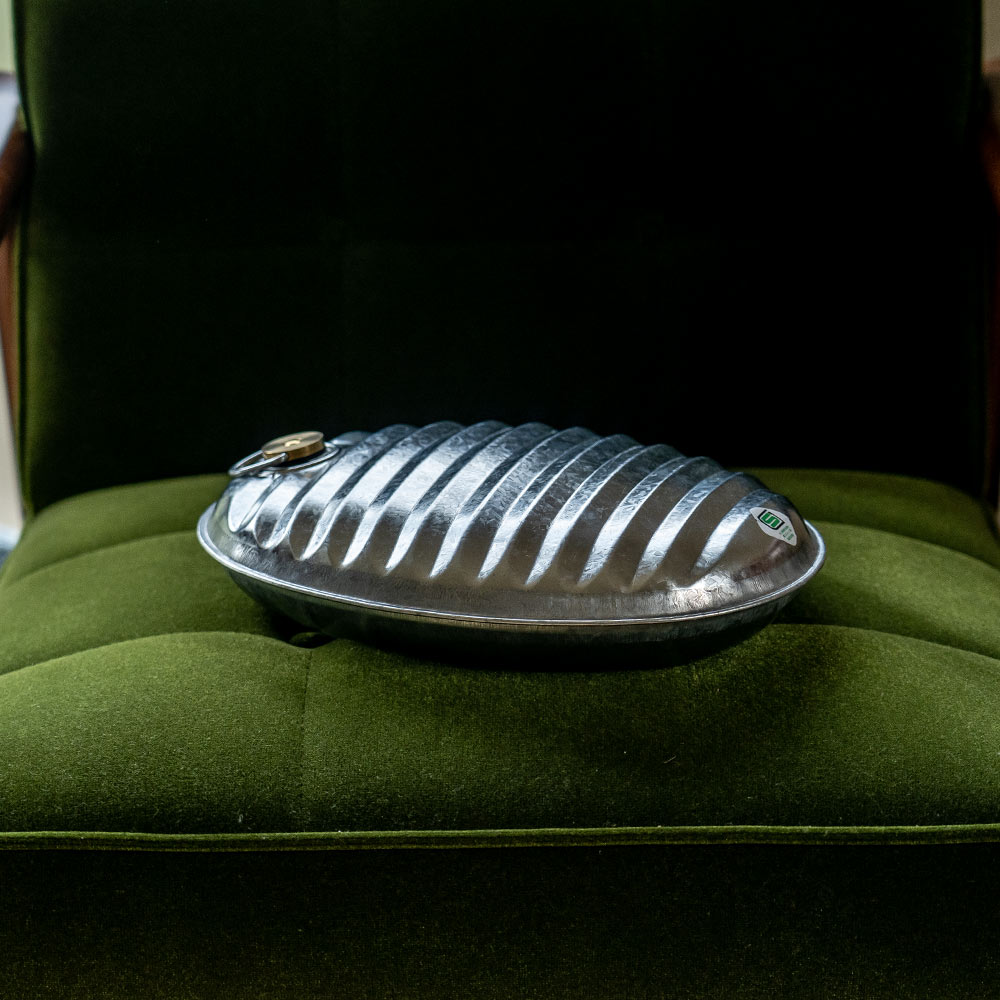 懐かしい雰囲気のある、昔ながらのトタン製湯たんぽ。