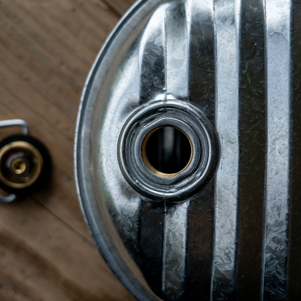 トタン製なので、お水を入れて直火で加熱することも可能です。(加熱時は口栓を外して下さい)IHは100V・200V対応。