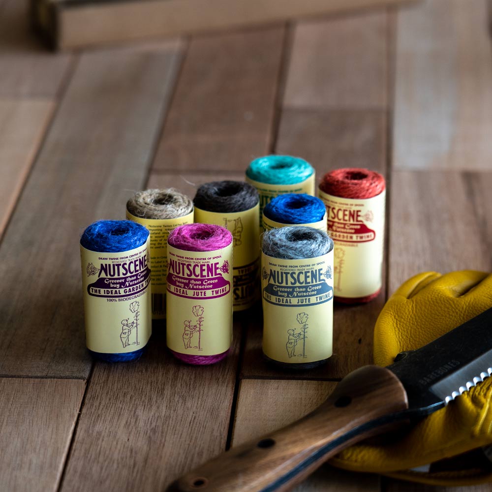 1922年に創業したスコットランドの麻紐ブランドNUTSCENE(ナッシーン)。 麻紐(TWINE)はバラや多くのつる性植物の誘引に使用したり、タグを結ぶのに使用した様々なシーンで役立ちます。 天然素材100%で作られているのでガーデンの景観にもなじみ、朽ちて土に落ちてもいつかは分解していく環境にも優しい製品です。