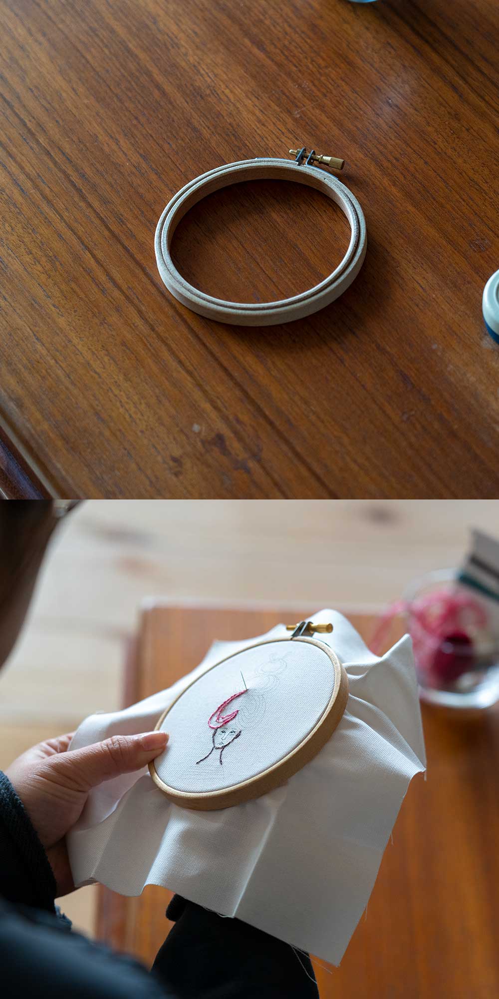 付属の木枠にはめるので作業しやすく、さらに刺繍への熟練感も演出してくれます(笑)
