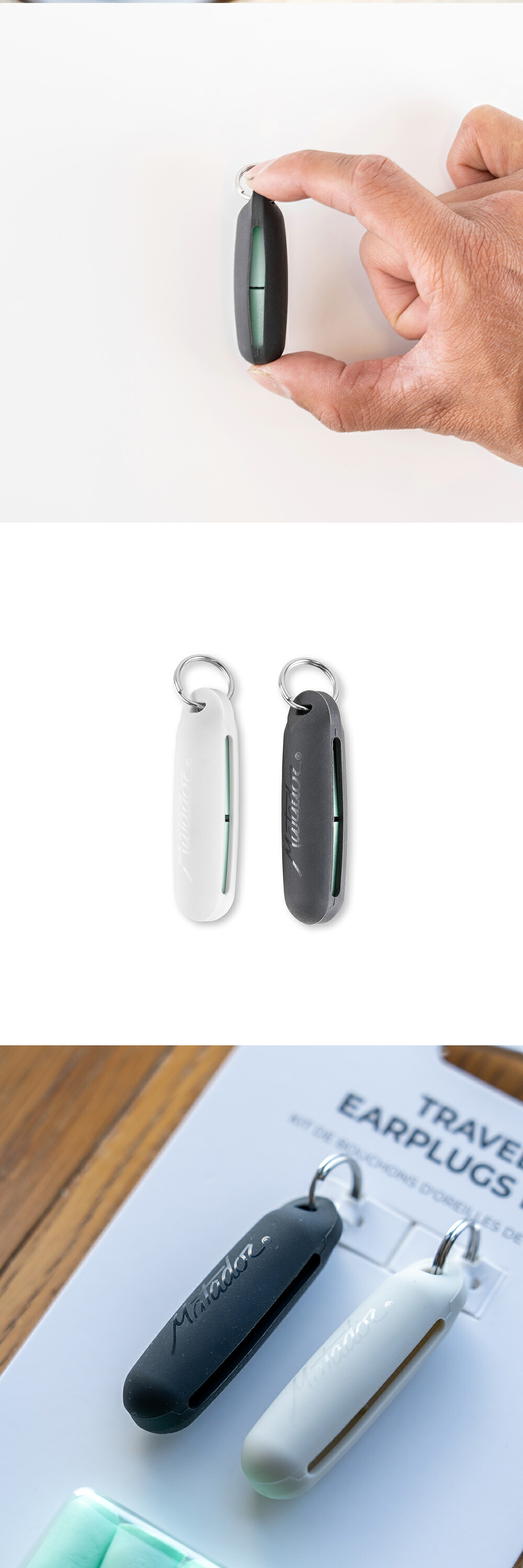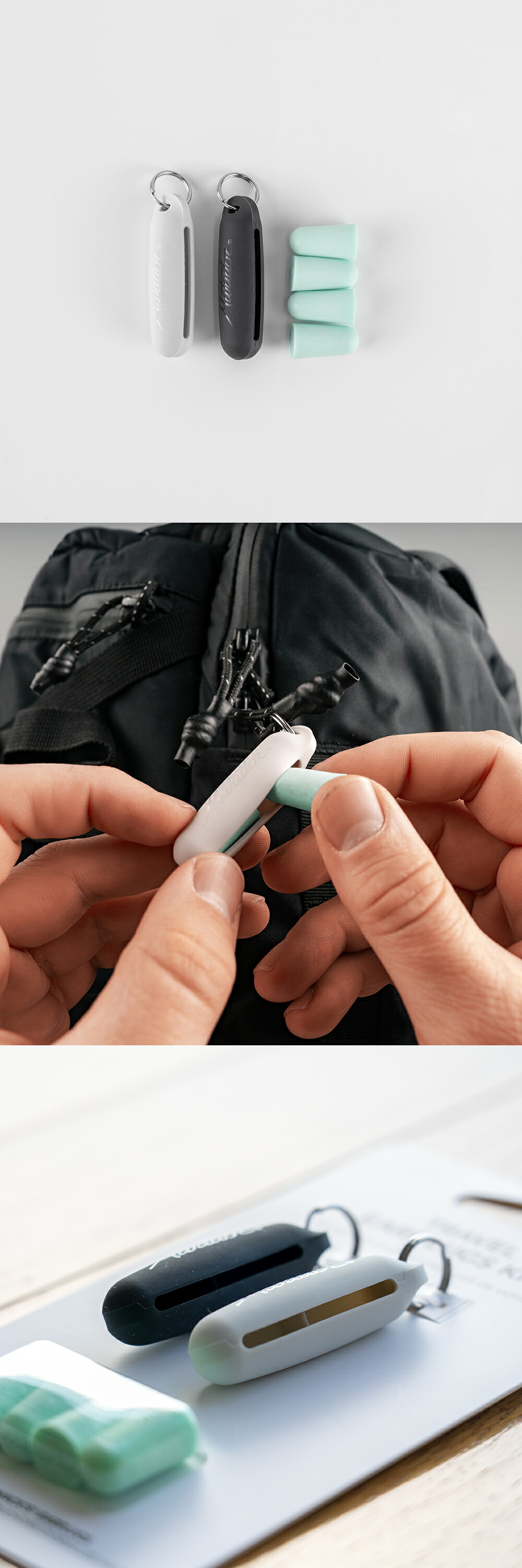 念入りにデザインされた柔軟なシリコンキーチェーンケースは、耳栓の取り出しと収納がしやすくなっています。また、このキーチェーンはジッパープルとして機能し、お使いの機内持ち込みバッグのジッパーに取り付けられるので必要なときに清潔で快適をもたらしてくれる耳栓をさっと取り出す事ができます。