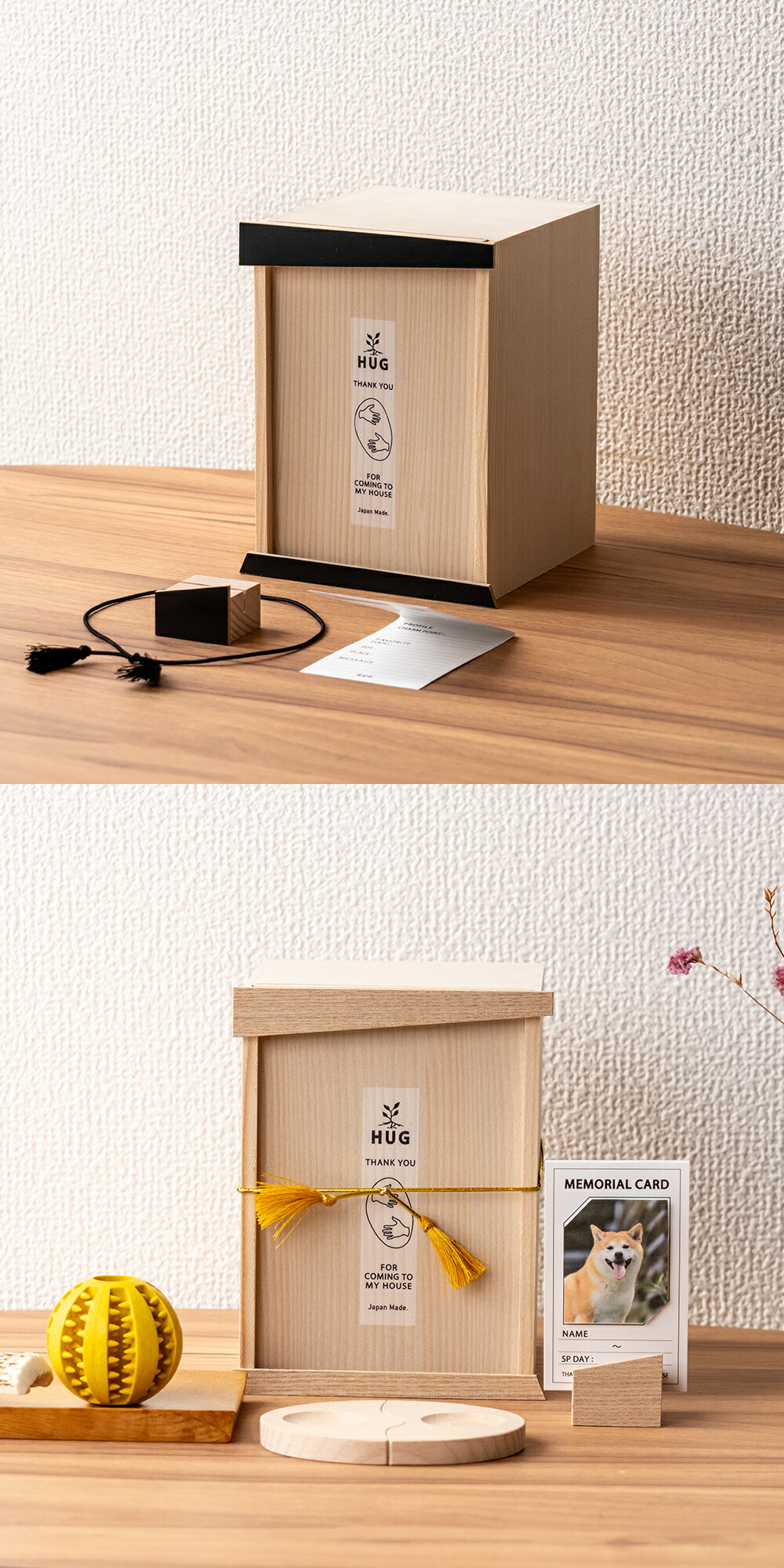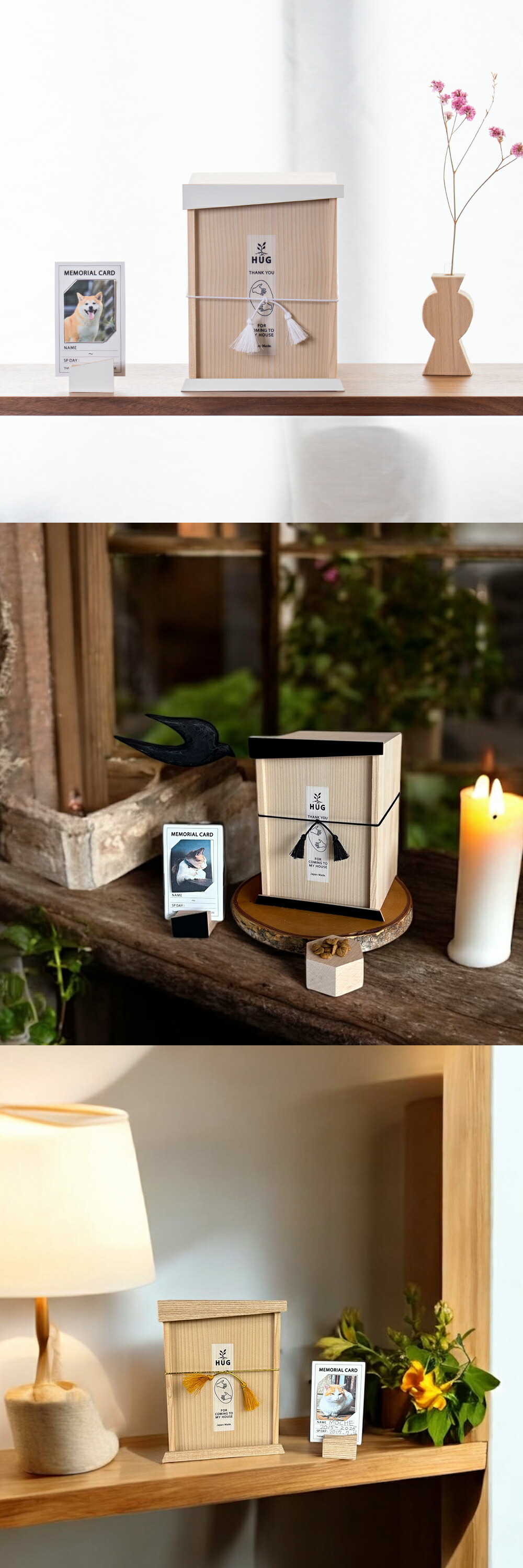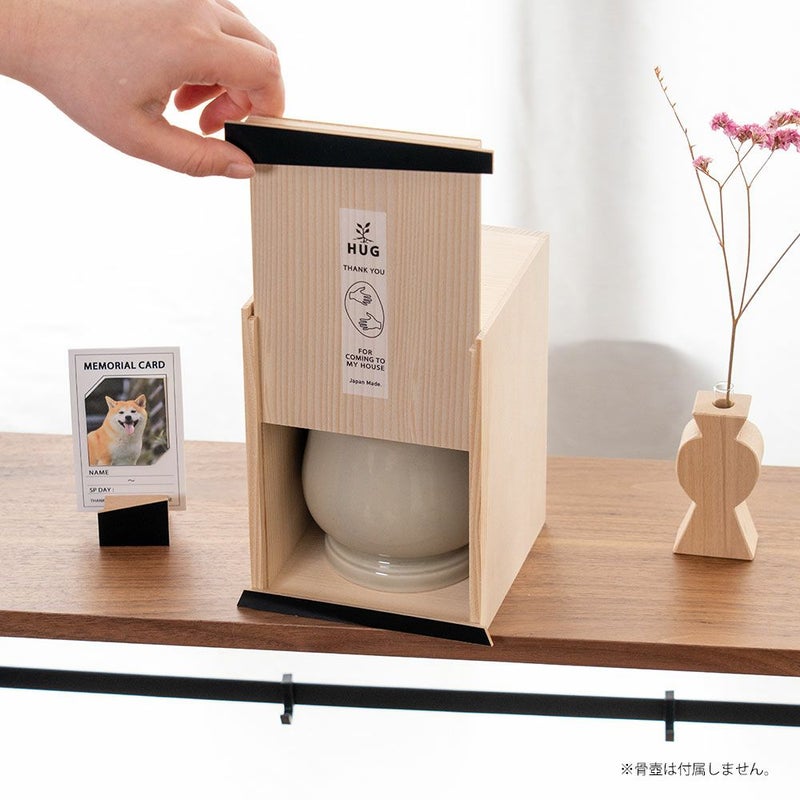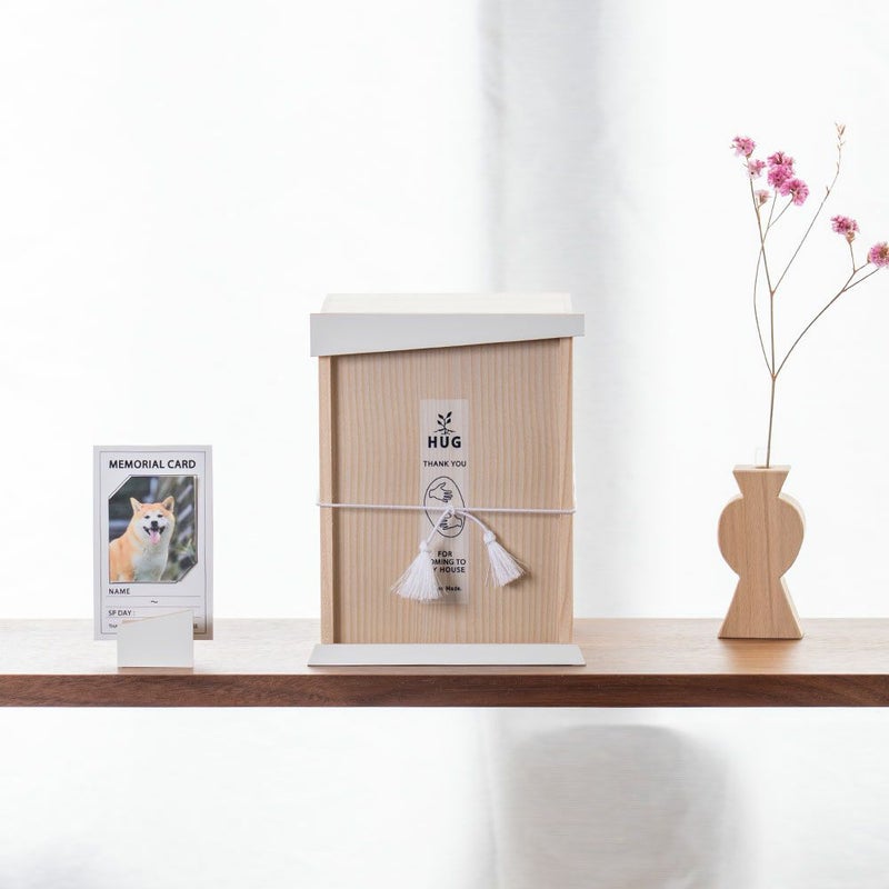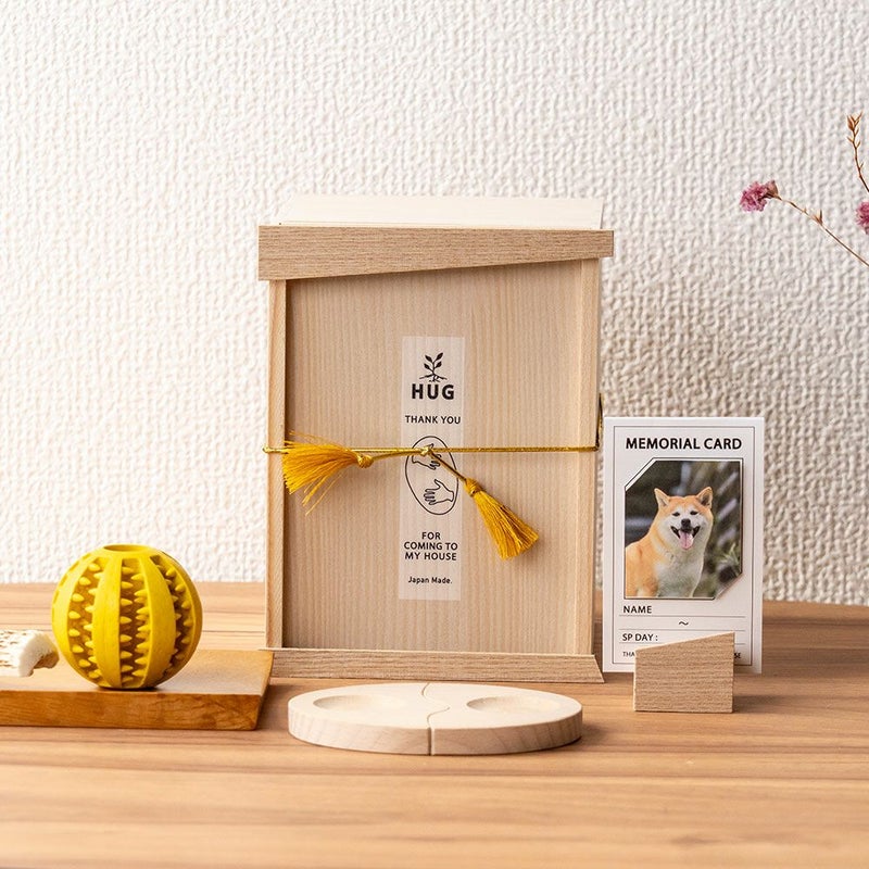 愛しいペットをそっと抱きしめるように、やさしく包み込むもみのき木製のメモリアルケースです。