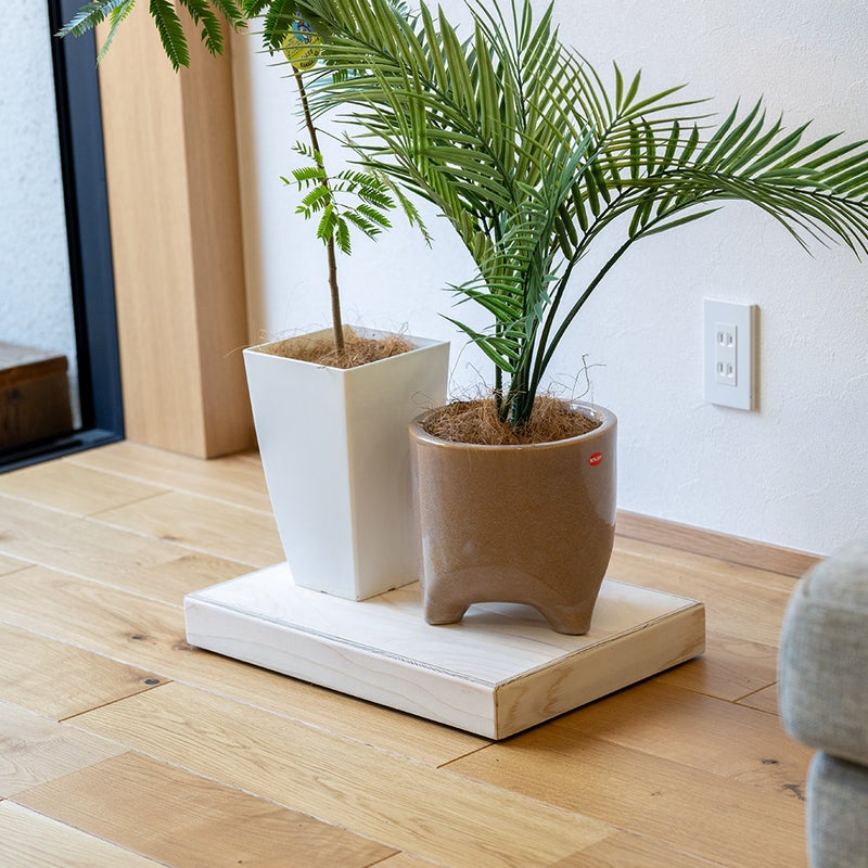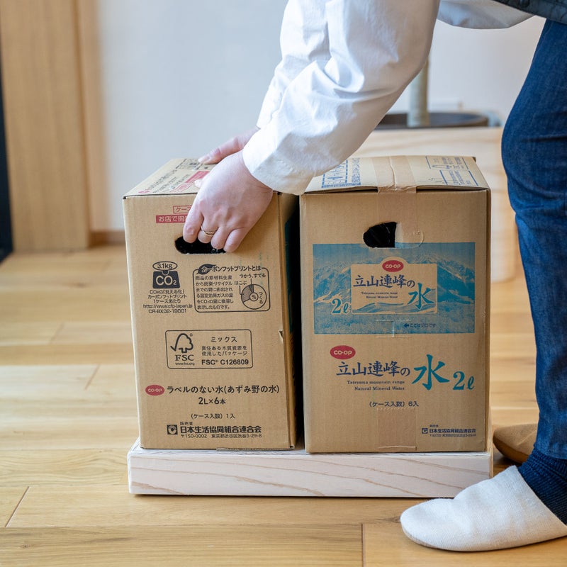 やさしい木の質感は、収納用品や家電の“下にある存在”でありながら、空間の印象を損ないません。