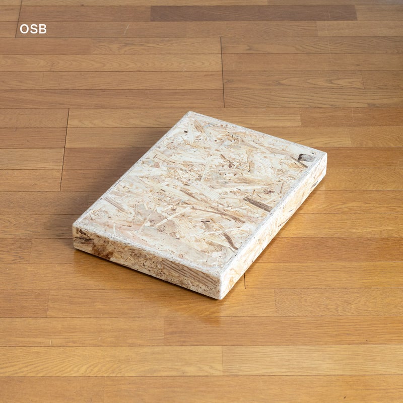 【OSB】短冊状の木片を圧着して固めたOSB合板。独特の存在感はお部屋のアクセントに。