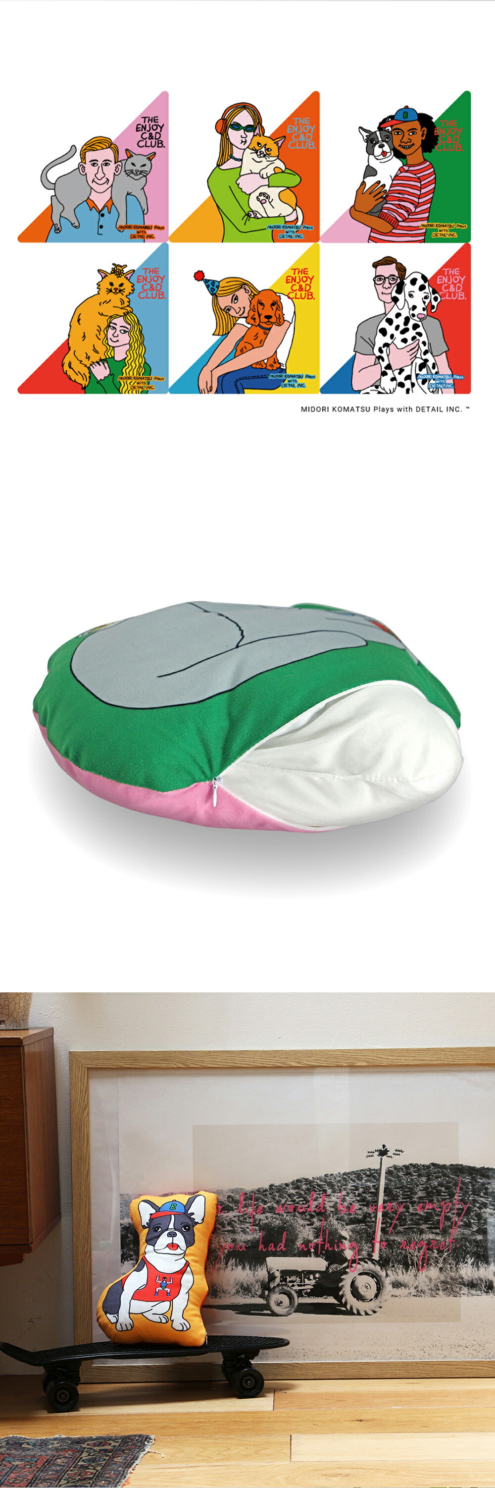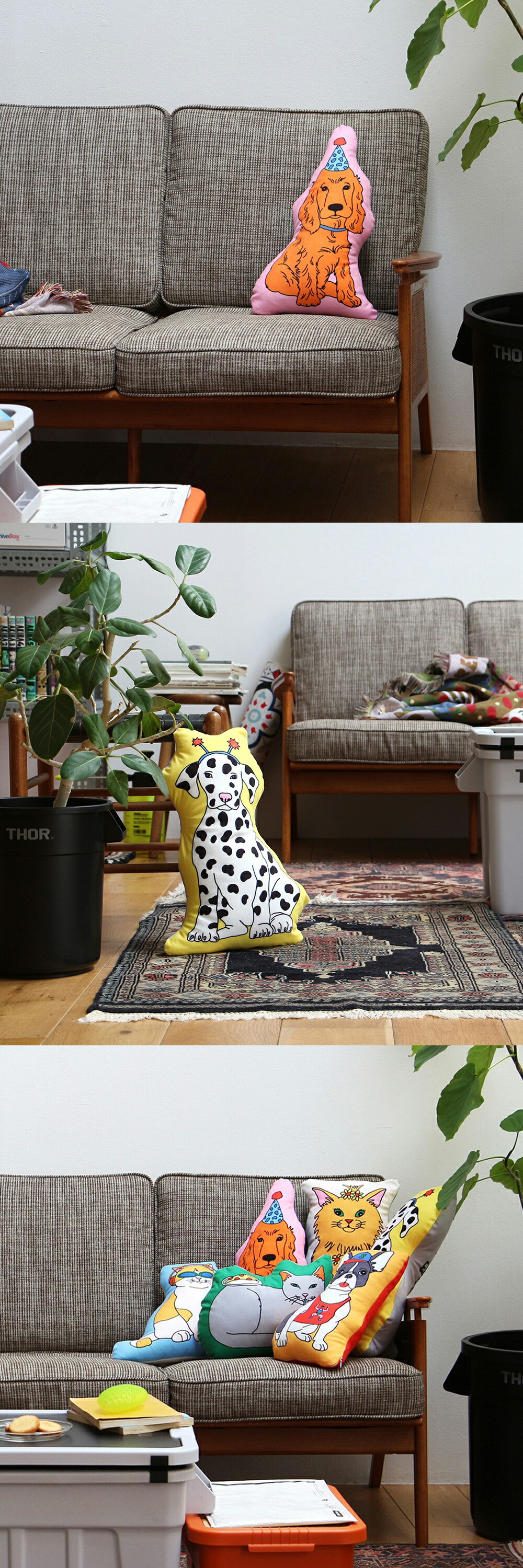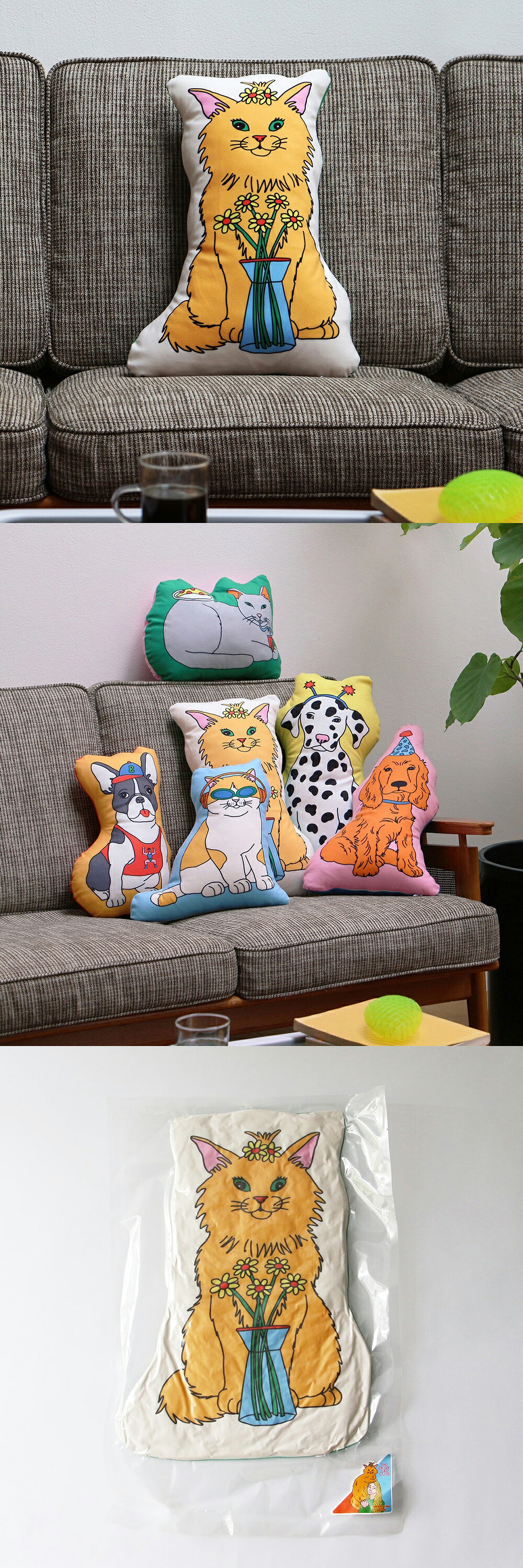 MIDORI KOMATSUデザインのPOPな犬猫クッション