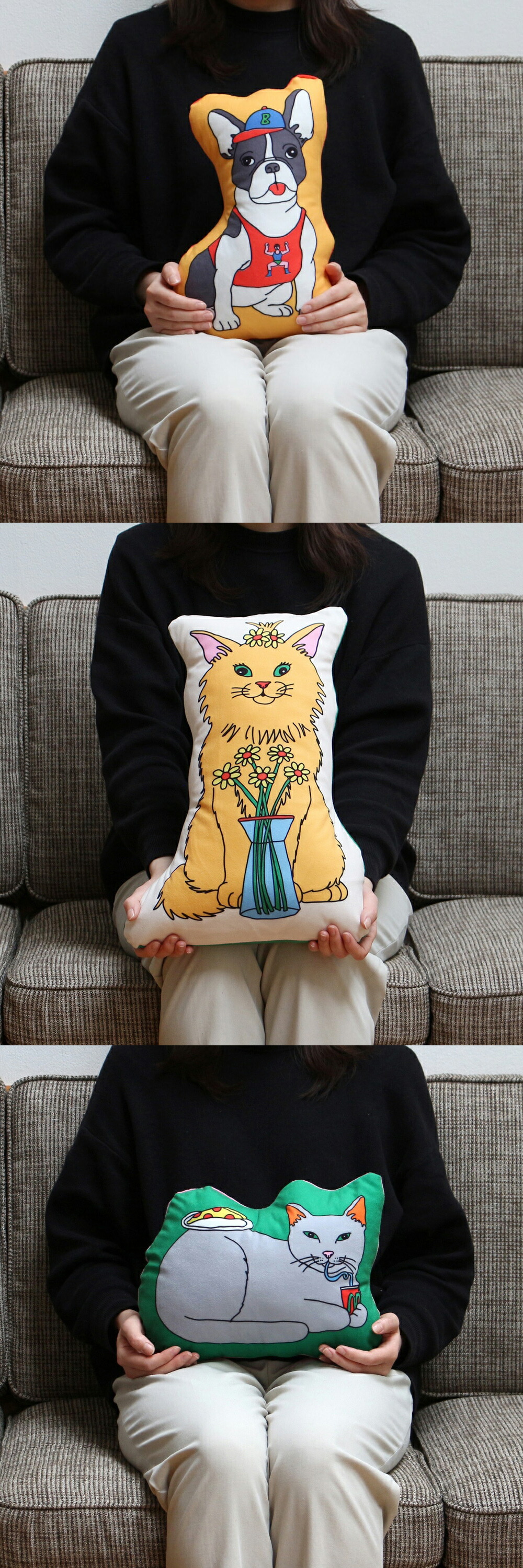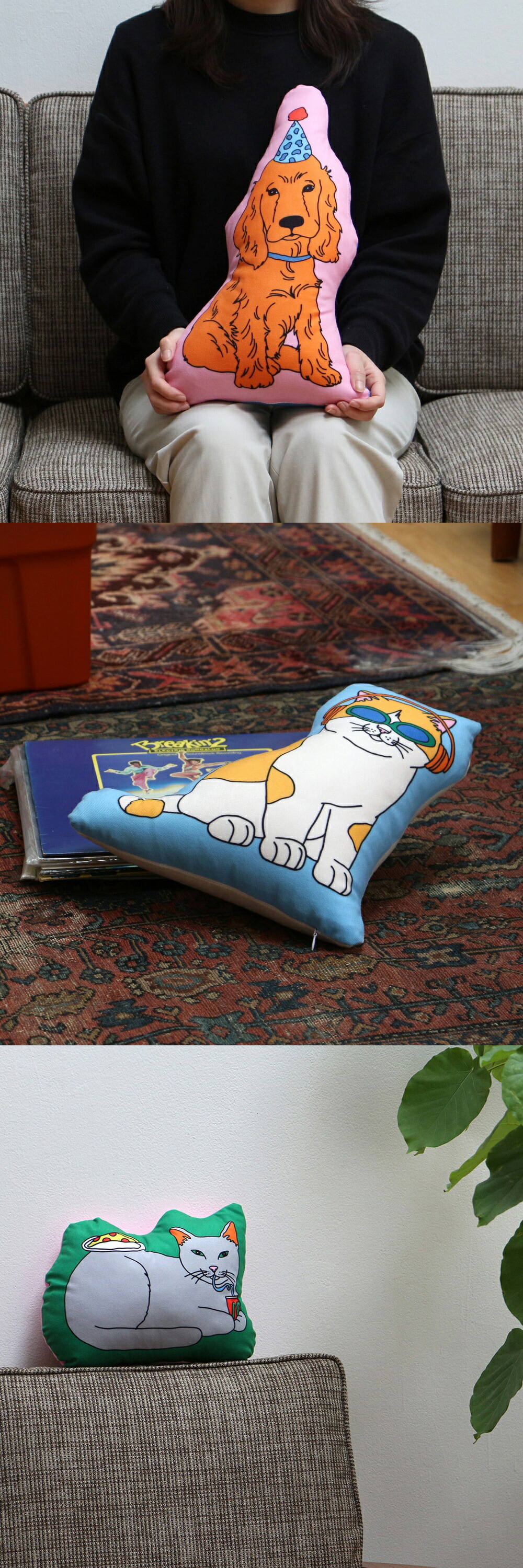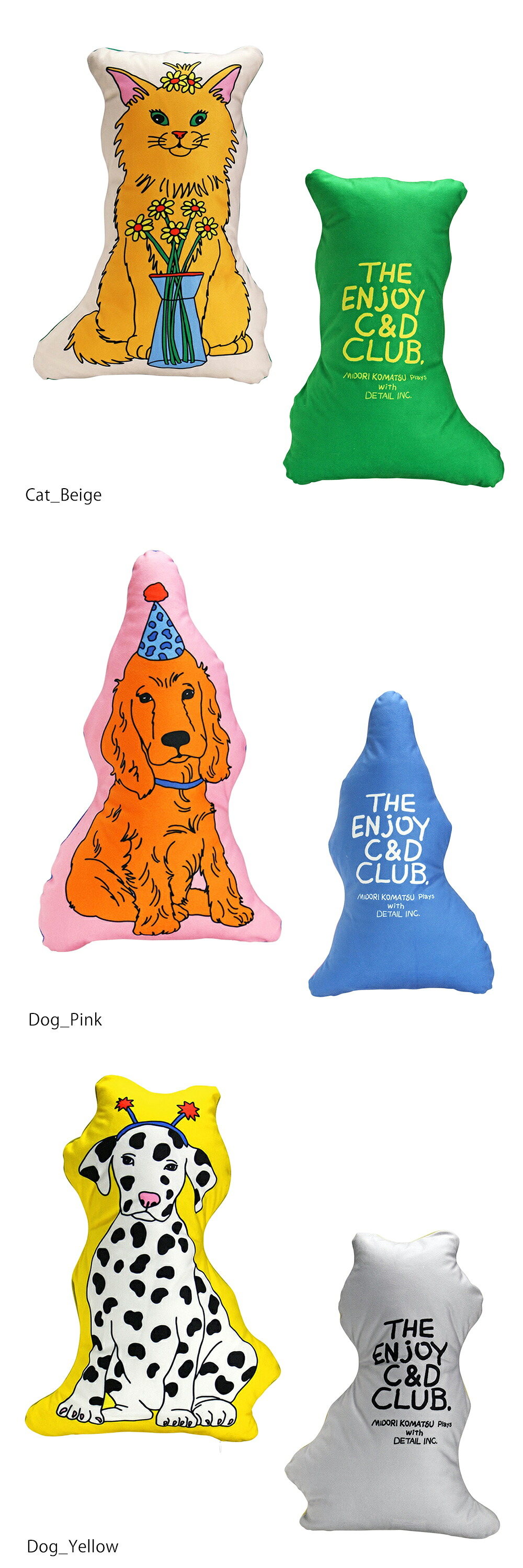 MIDORI KOMATSUデザインのPOPな犬猫クッション