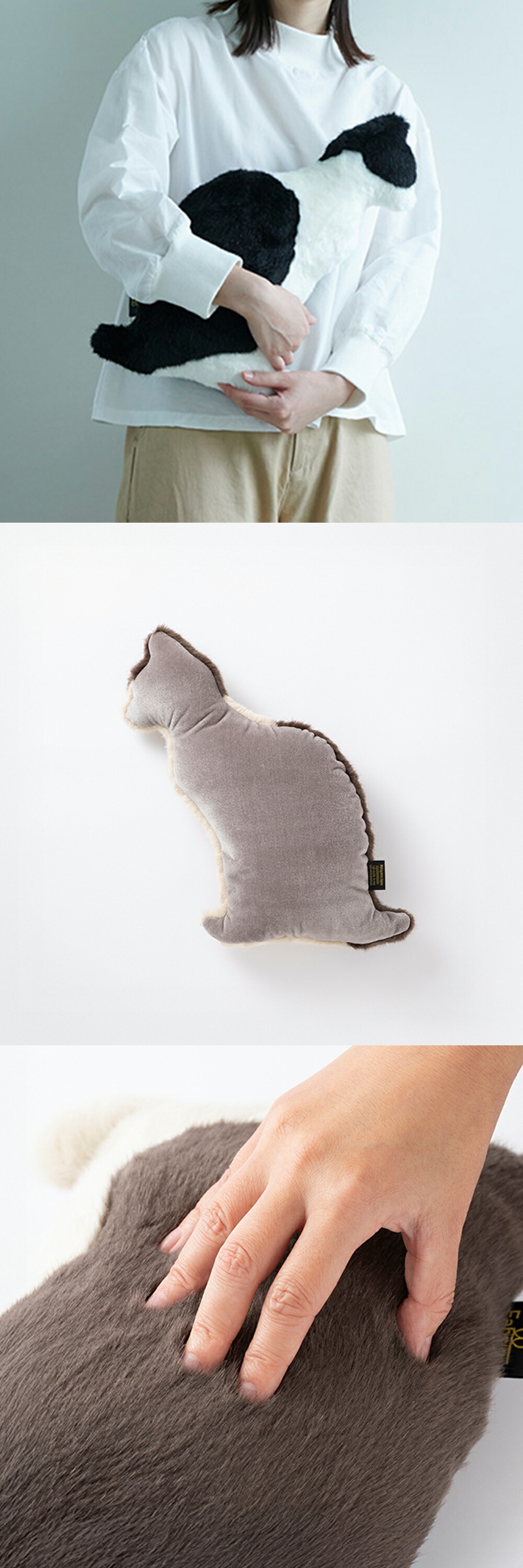 世界唯一の「特殊有毛パイル織物」の産地である和歌山県高野口のパイル織物を使い、本物の猫のようなふんわりなめらか手触りを実現しています。