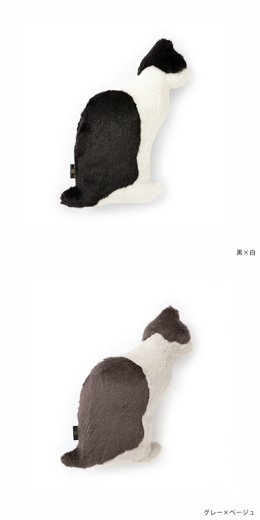 philosophyタイプのクッションは全部で2パターンのブチネコ。白黒がはっきりとしたものと、やさしい印象の薄グレーとモカ。裏面は、なめらかな無地のモケット生地が使われています。ご自宅用にはもちろん、猫好きな方への贈りものにもいかがでしょうか。