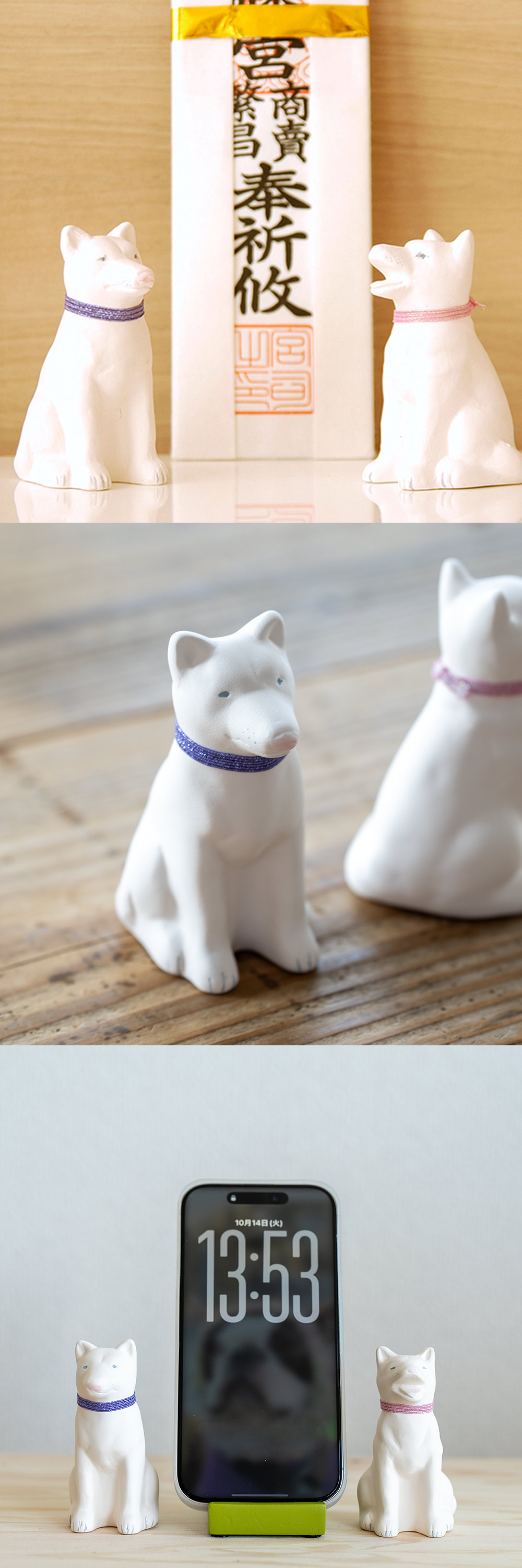 古くから神社やお寺の護衛を務めてきた狛犬のルーツには諸説あり、世界中に類似の守護獣がいます。 左右非対称の「あ・うん」は日本ならでは。忠実で勇敢かつキュートな和犬が、毎日のあなたのご無事のお帰りをお待ちします。