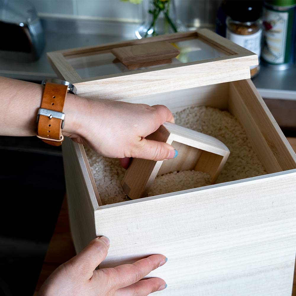 お米を美味しく保存する事はもちろん、毎日使うものだからこそ枡やフタにも使いやすい工夫が施された米びつです。
