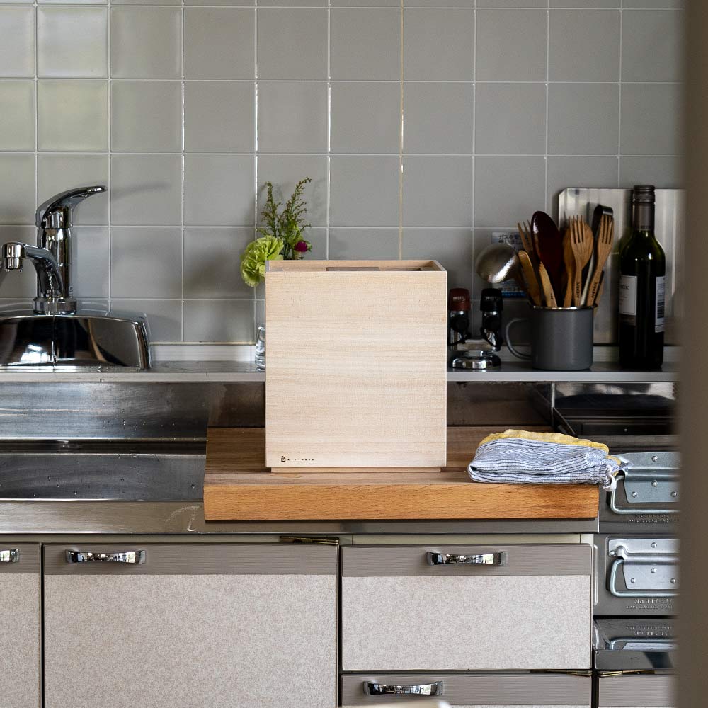 桐独特の優しい風合いとシンプルですっきとしたデザインは見た目にも美しく、キッチンで視界に入る場所に置く事をオススメいたします。