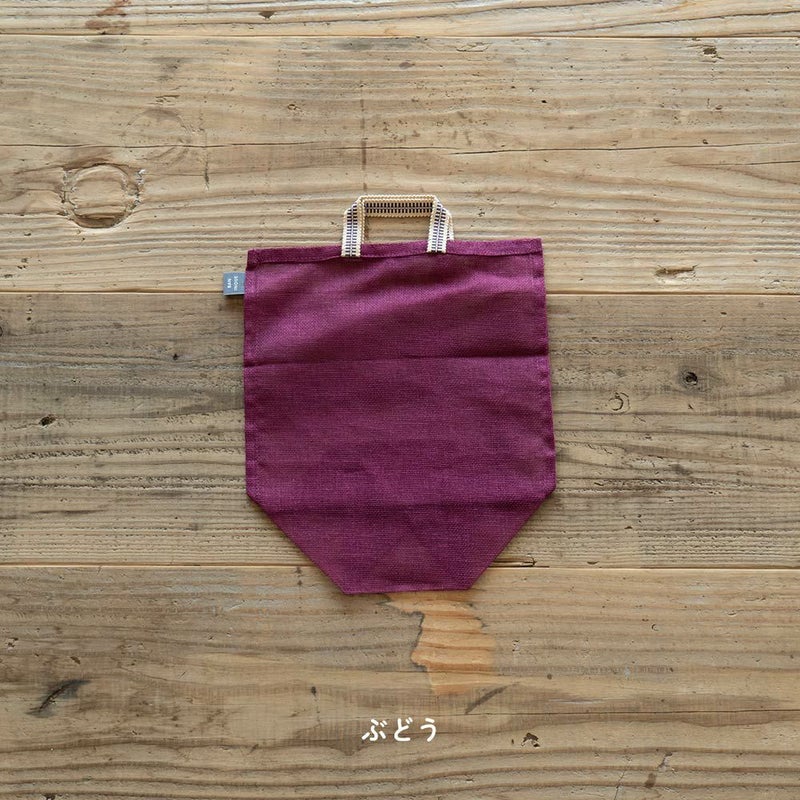 フックや戸棚に引っ掛けられるように、持ち手は強度に優れた日本古来の真田紐(さなだひも)を使用。