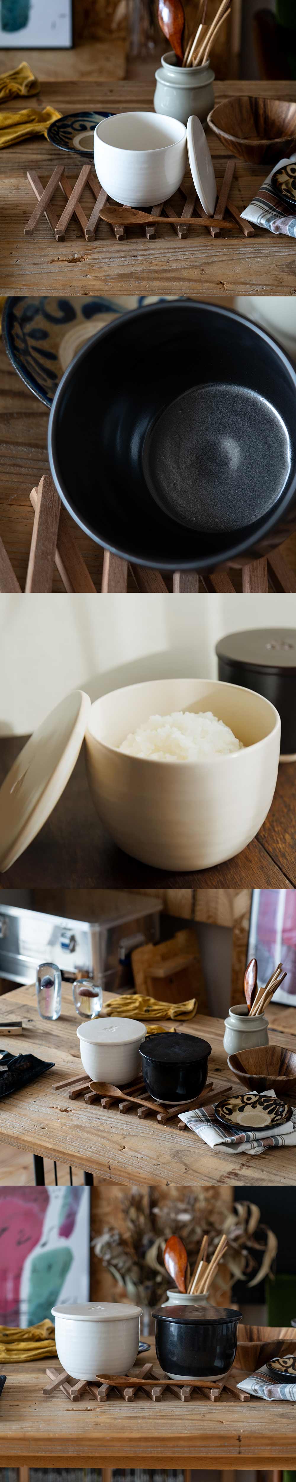 蓋裏の素焼き部分がご飯の水分を調節することで、 時間が経っても美味しさを保ちます。