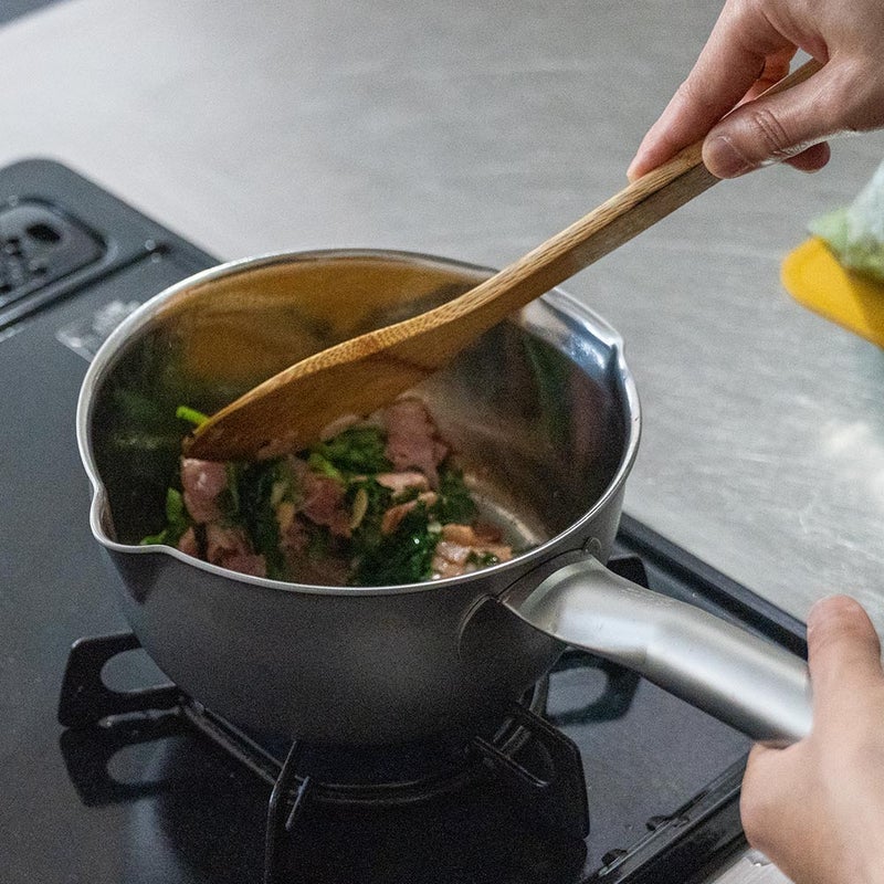 これにより、煮込み料理やソースづくりといった、じっくり火を通したい料理にも安心して使えます。耐久性にも優れ、お手入れもしやすい仕様です。