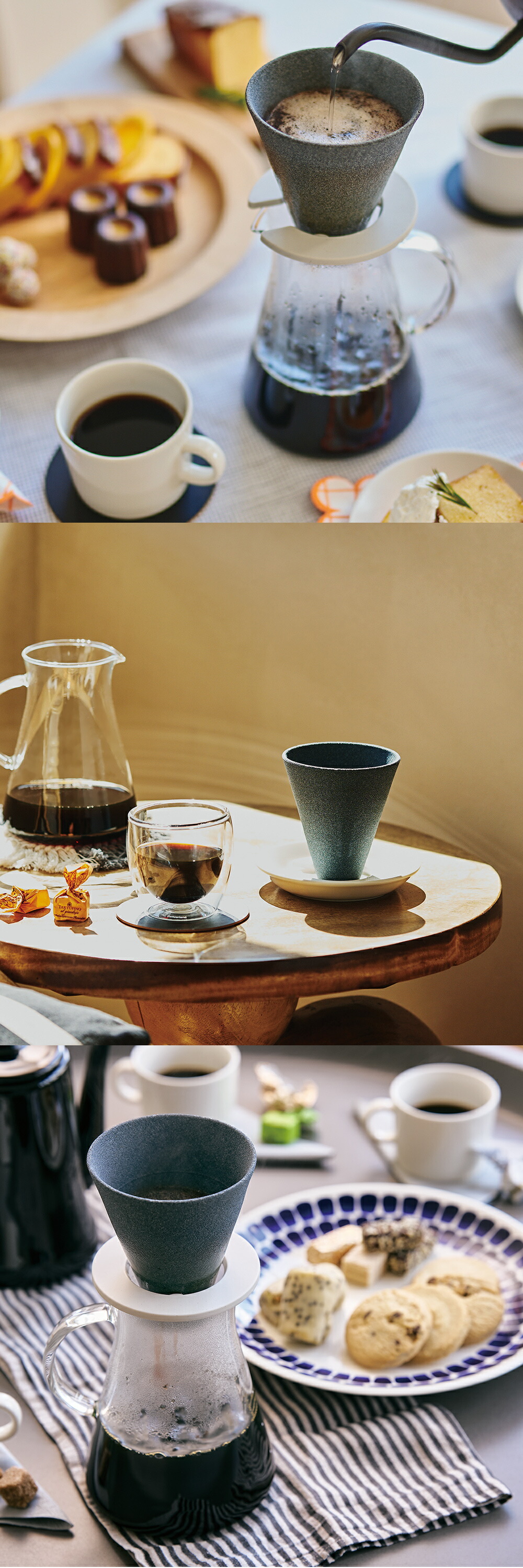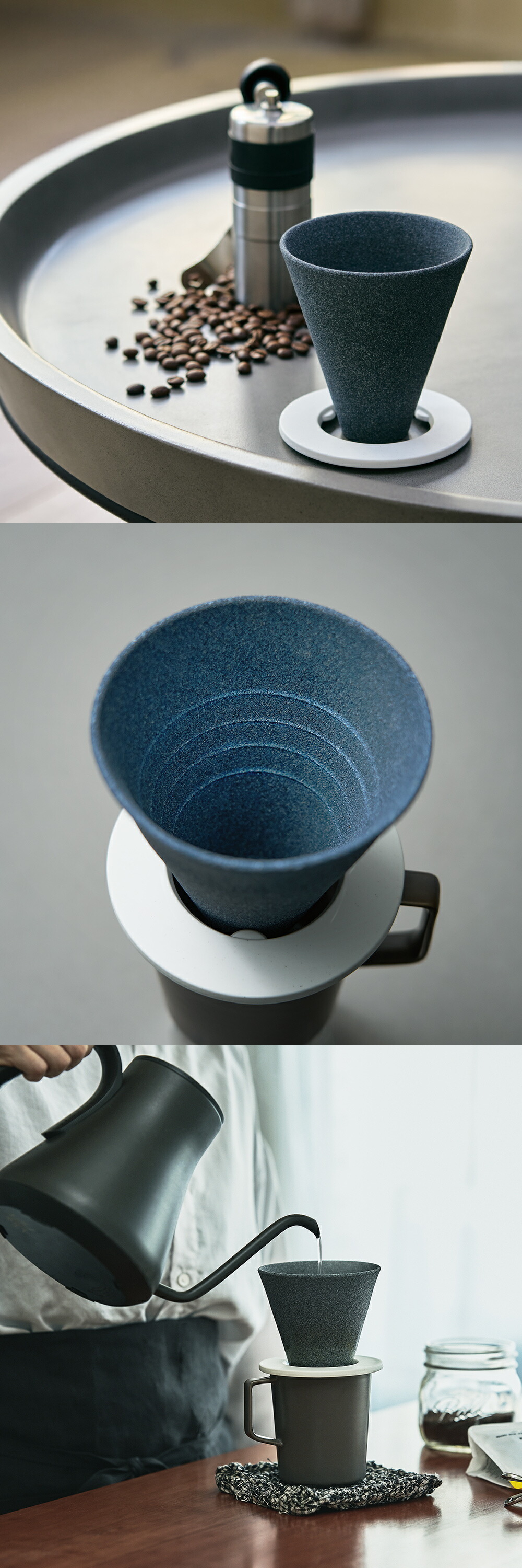雨が長い年月を経て、湧き水や川となってまた地上に戻る自然の濾過構造を模したようなこの技術が、コーヒー豆が本来持つ香りとコクを、より豊かに引き出します。1~4杯まで一度に抽出できるので、ひとり時間にも、おもてなしのシーンにも。