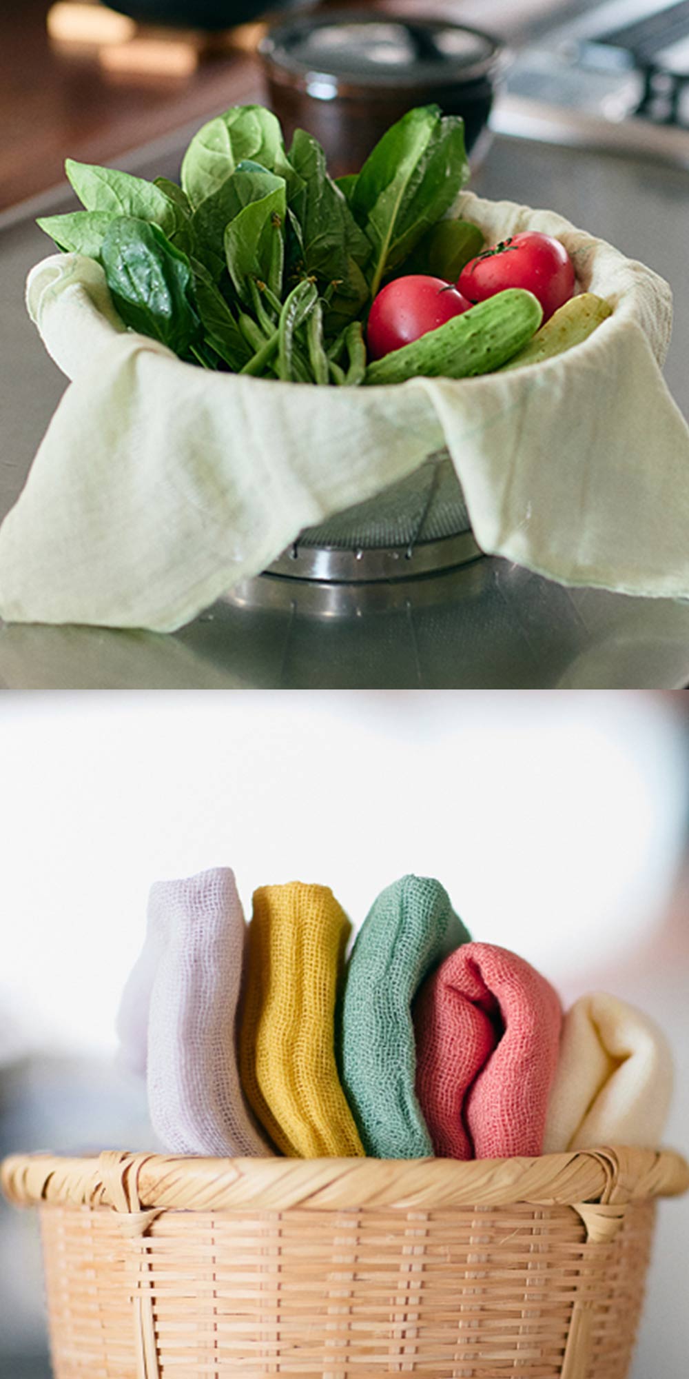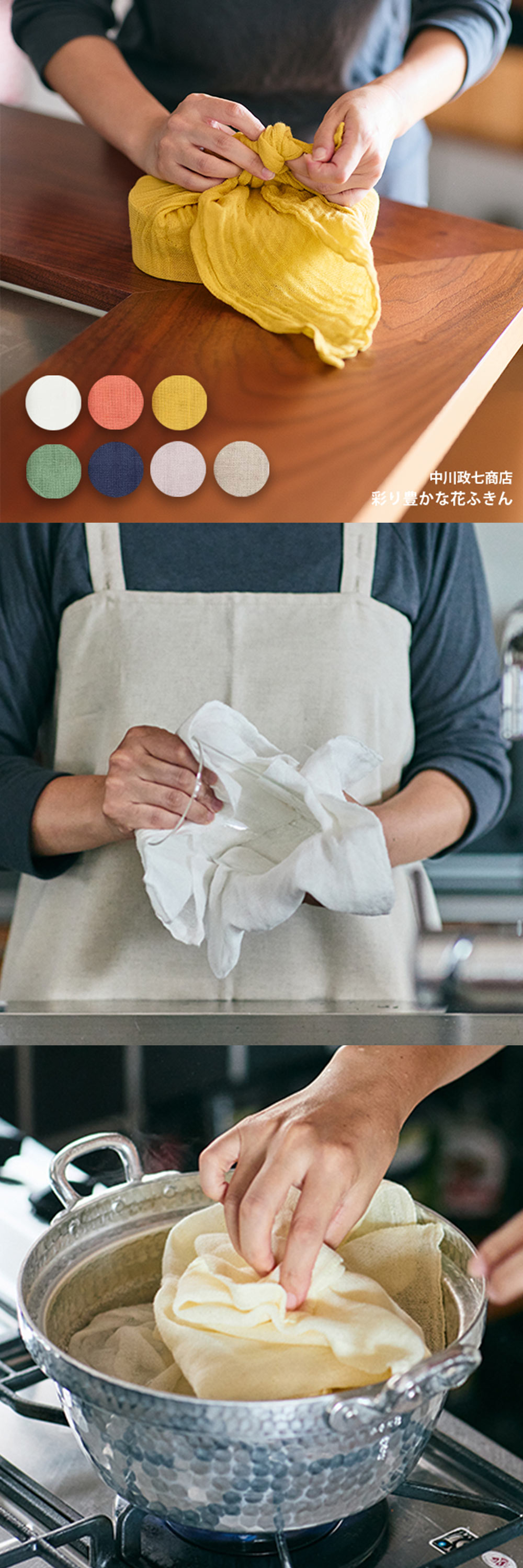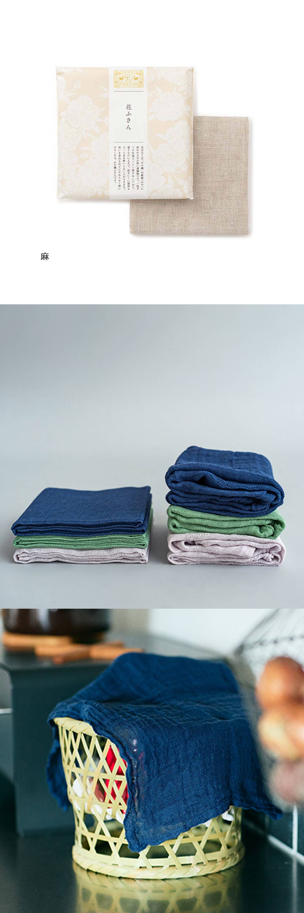 ふきん以外にもお弁当包みや出汁漉し、野菜の水気取りなどさまざまな用途にお使いいただけます。