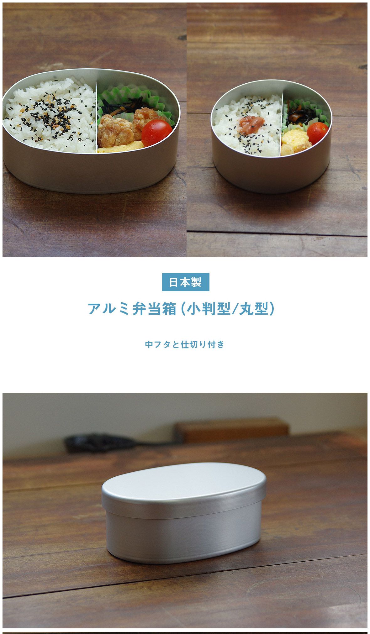 選べる丸型or小判形。軽くて丈夫で、長く使えて衛生的!懐かしさと新しさで話題のアルミ弁当箱!内フタ付きで汁漏れの心配無用。安心安全の日本製 ノーブランド|アルミ弁当箱