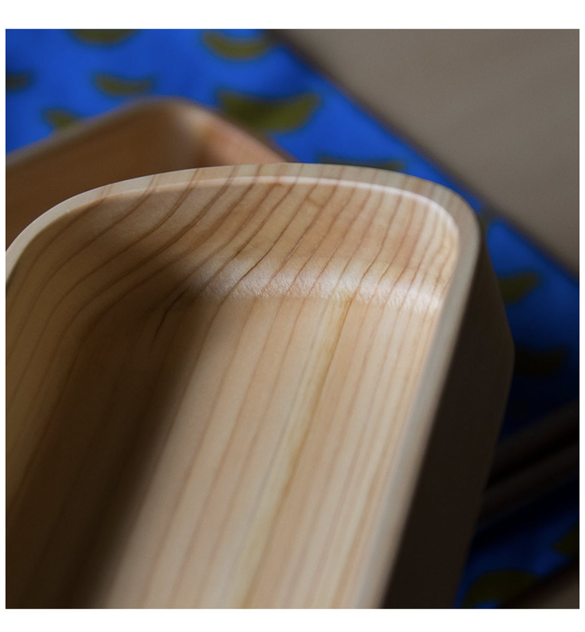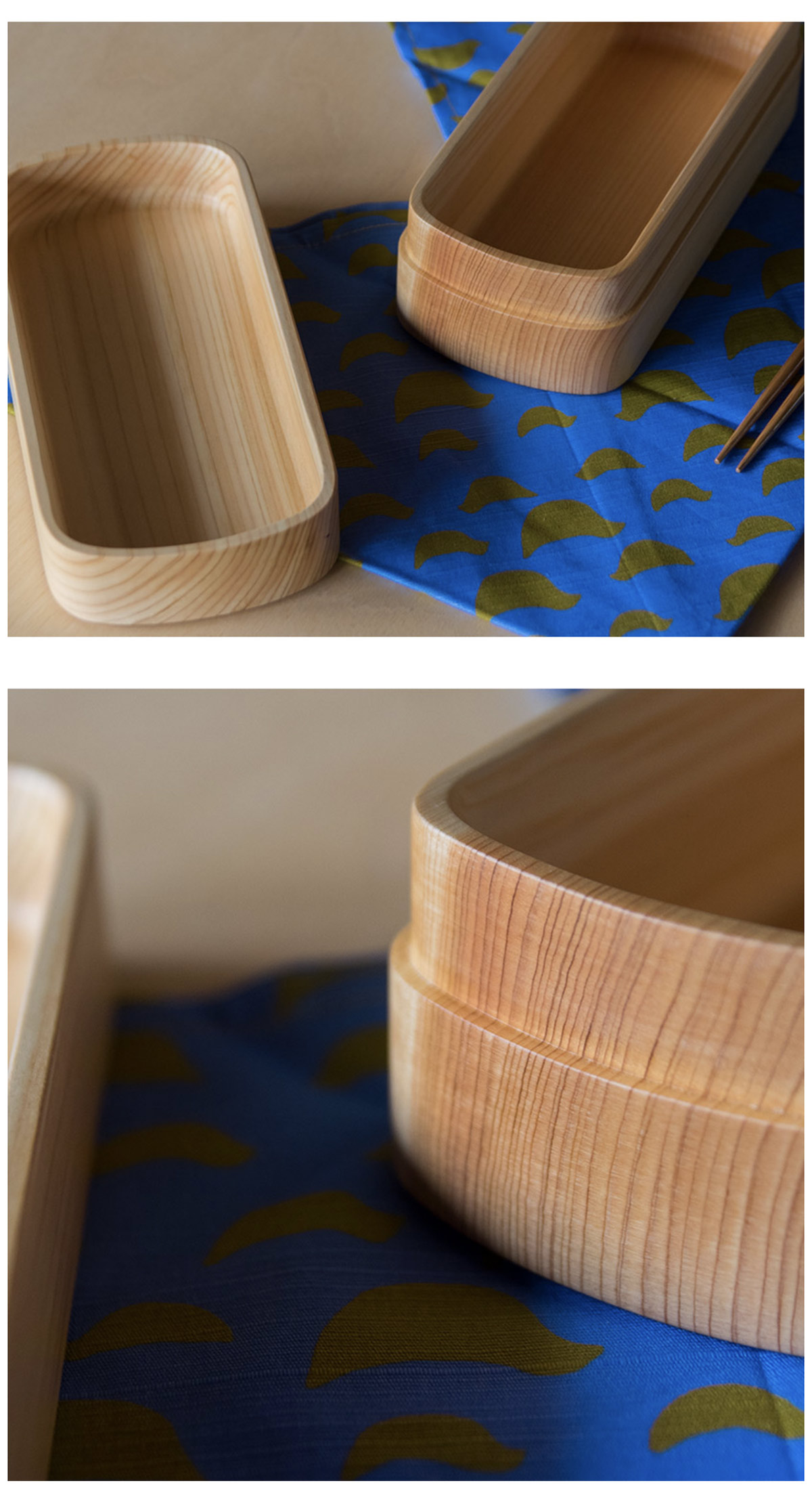 接着剤を一切使わず、天然の木目を生かした、長い間愛用できるシンプルで美しいお弁当箱です。