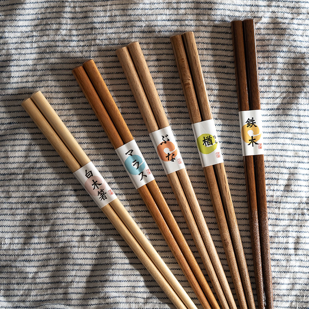 指なじみがいい天然木素材。日常使い〜来客用まで、お使いいただけるシンプルな木のお箸セット。