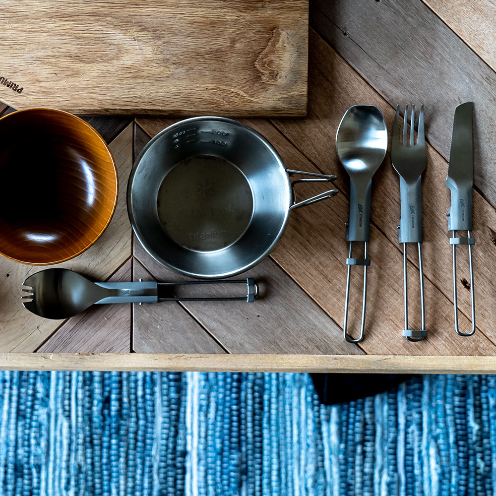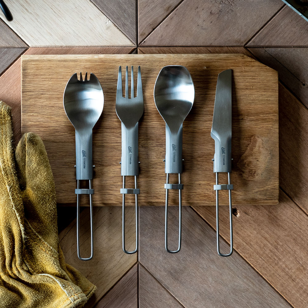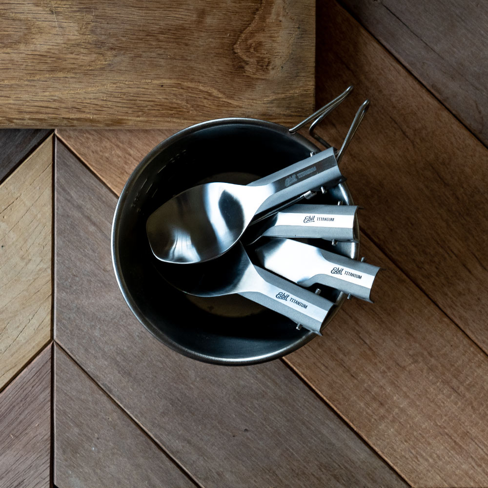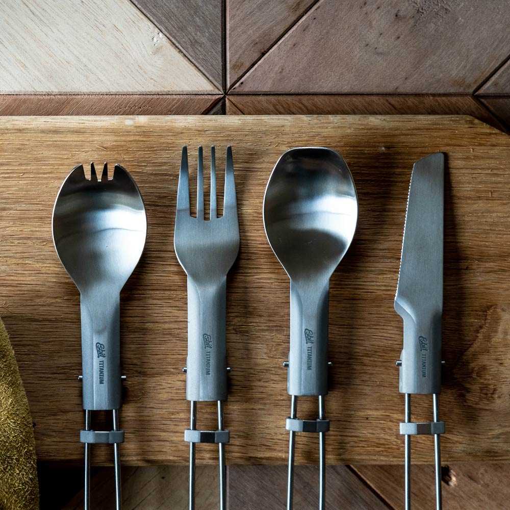 携行に最適な軽量チタン製 esbit|フォールディングカトラリー