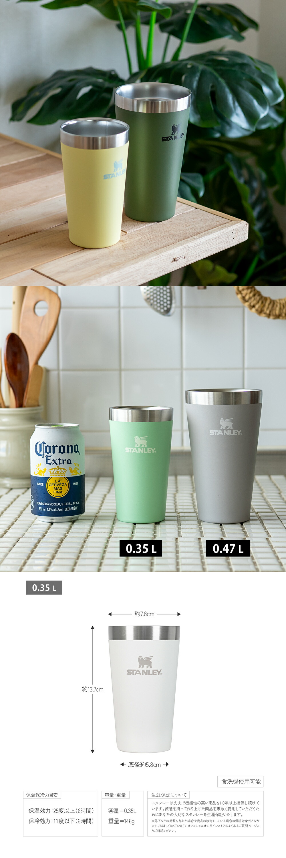 従来の0.47Lサイズに加え、手に馴染む0.35Lサイズも新たにラインナップ。