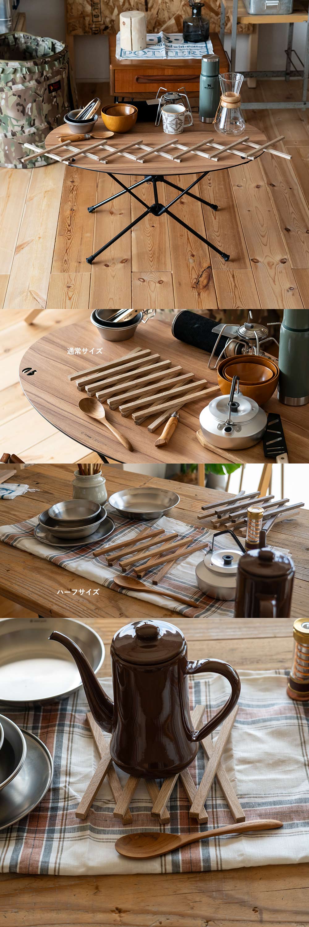 工務店ならではの知識と工夫が散りばめられた、オリジナル鍋敷き。ご好評につき、あらたにハーフサイズの鍋敷きをご用意いたしました。