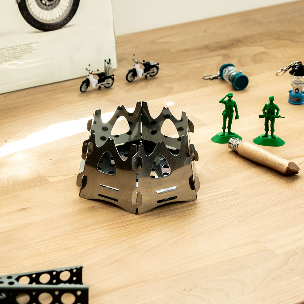 ●ポケットに入れて持ち運べるミニ焚き火台。