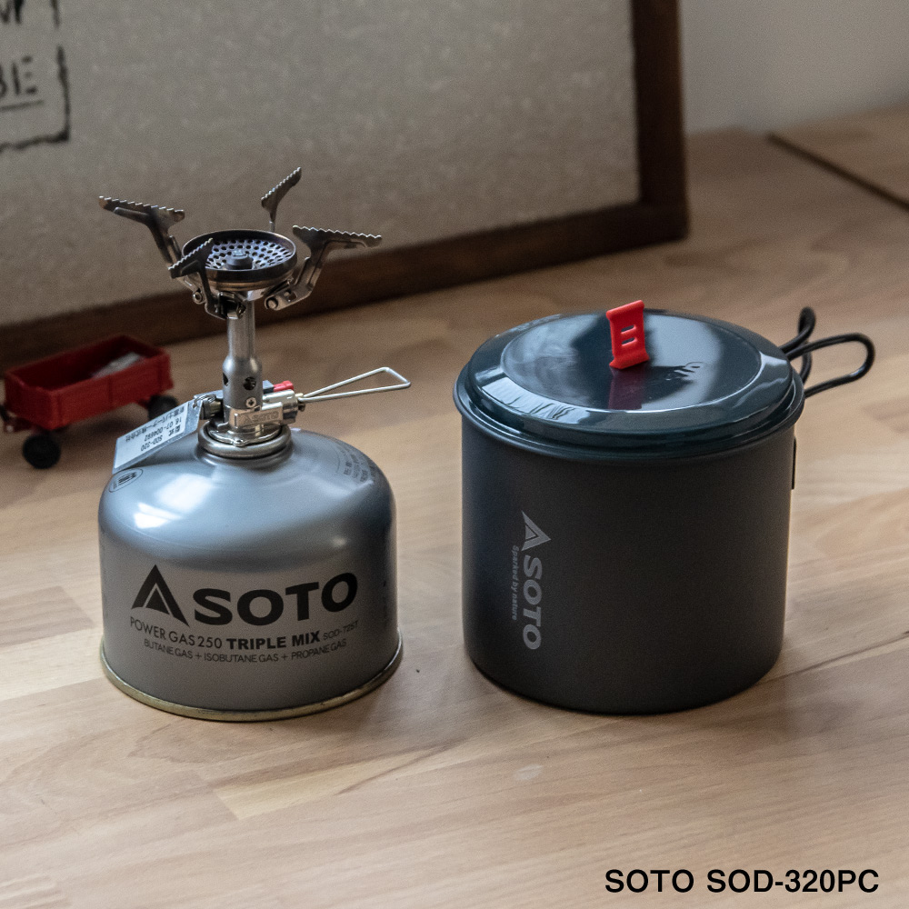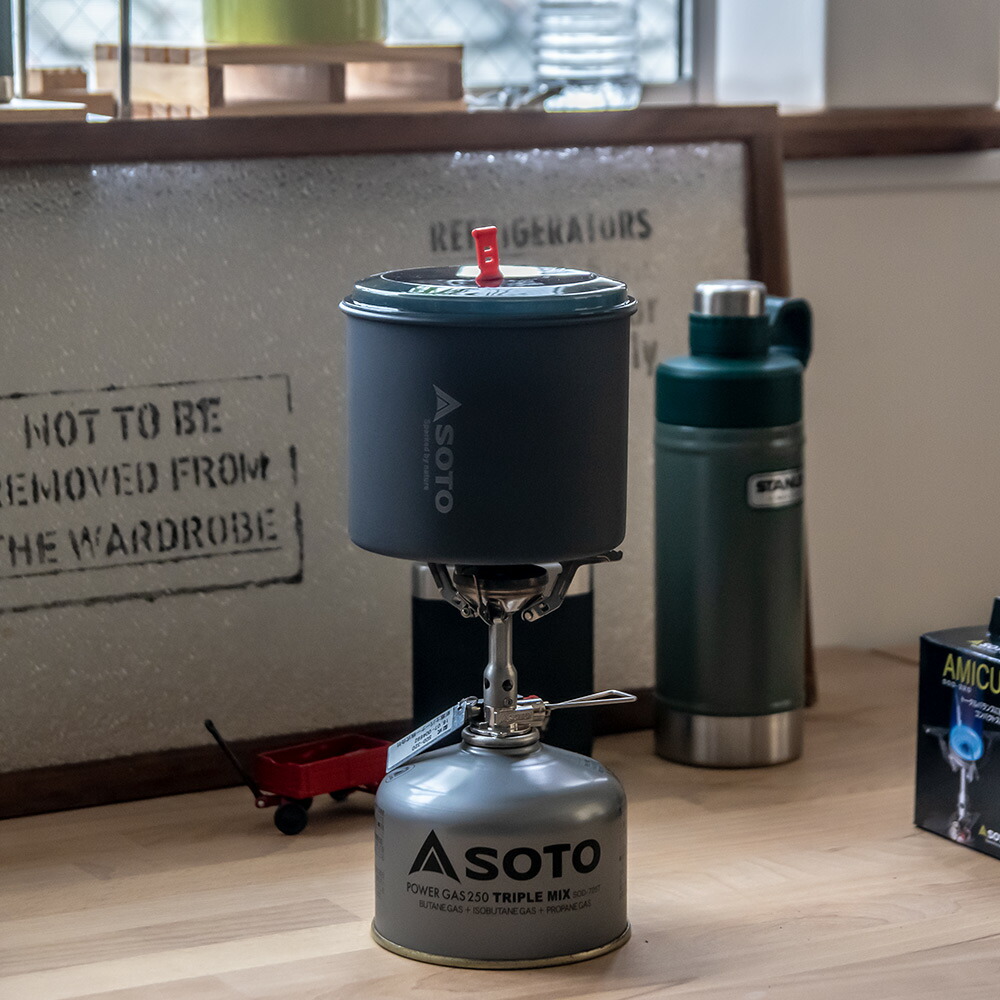 トータルバランスに優れたコンパクトストーブ、SOTOシングルストーブ AMICUS(アミカス)とアルミクッカーのセット。