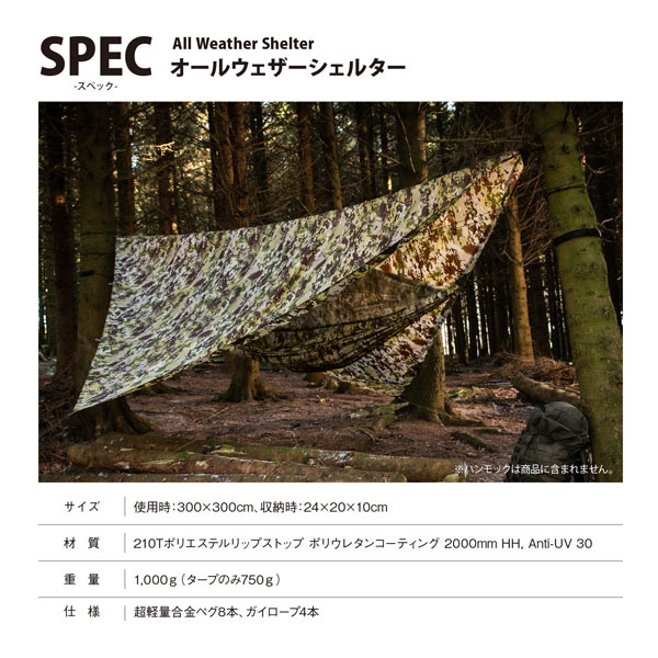 全天候型の100%防水多機能タープシェルター Snugpak|オールウェザーシェルター テレインカモ
