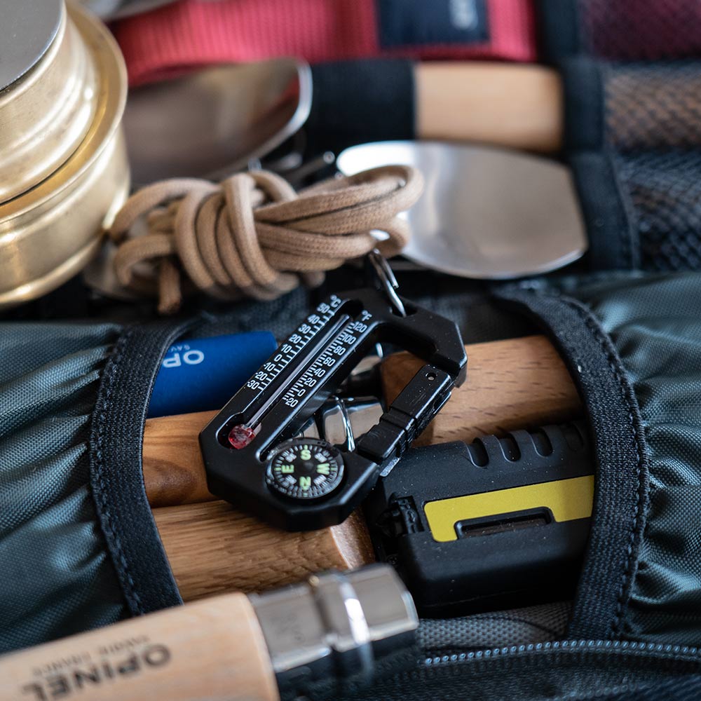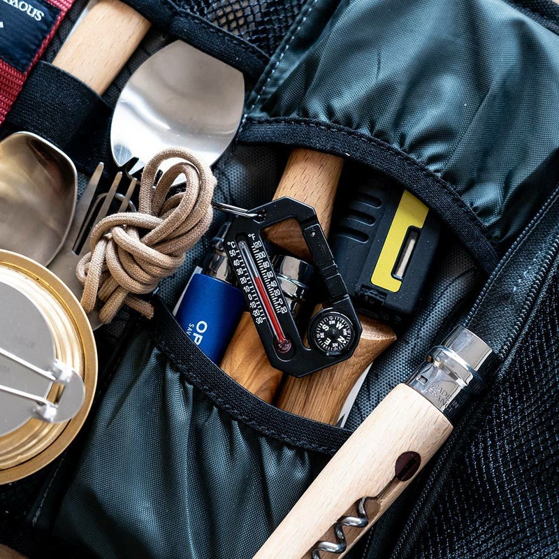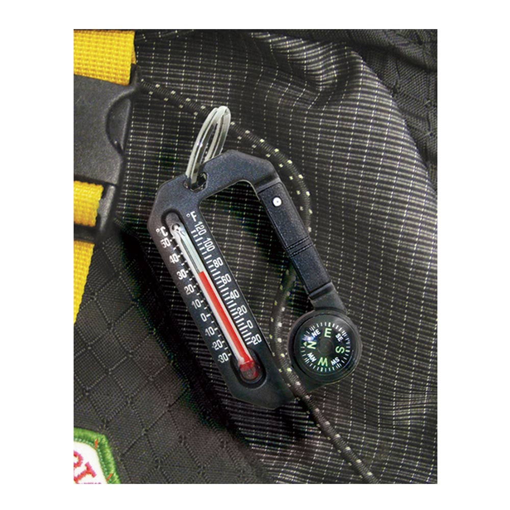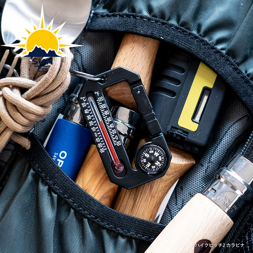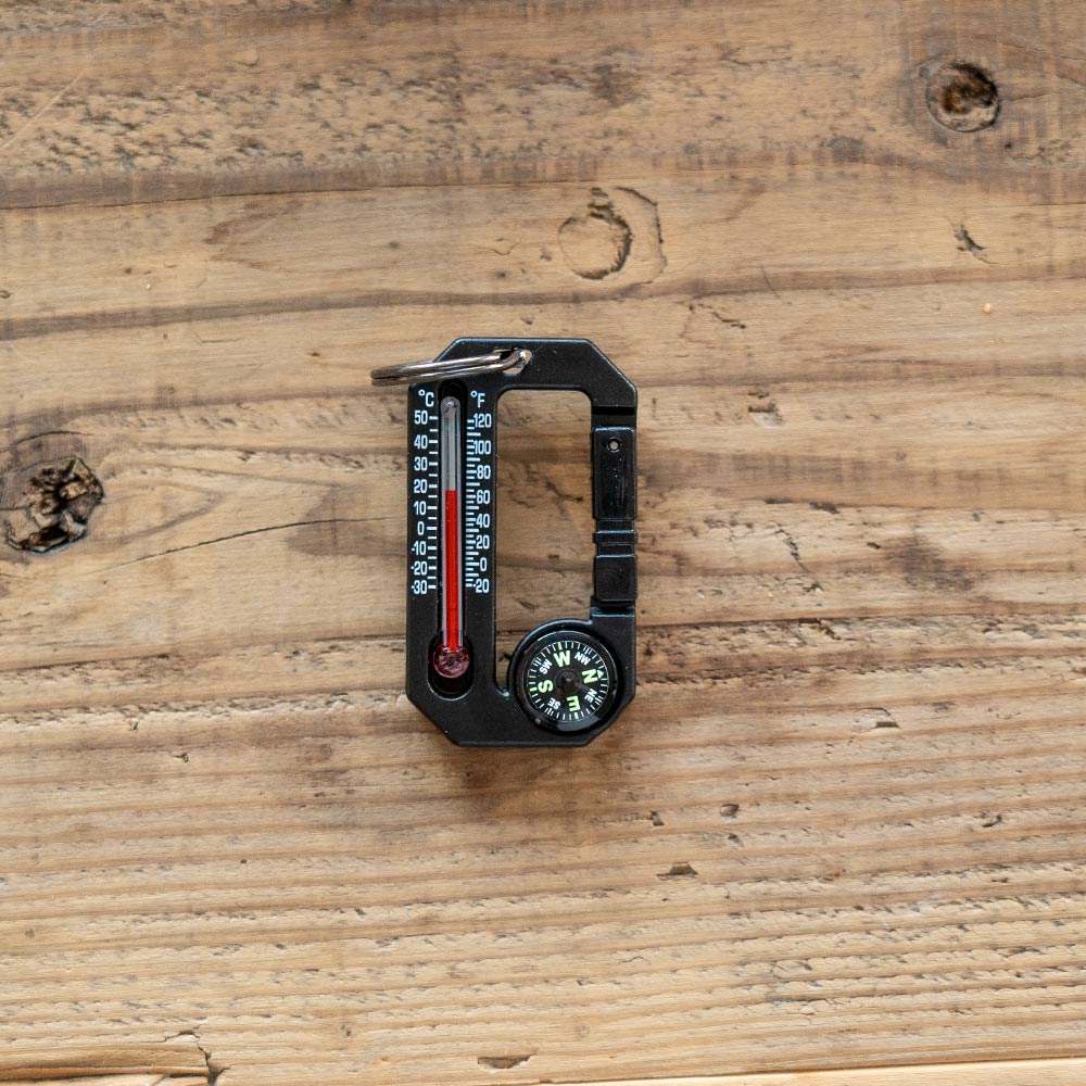 ハイクヒッチ2 カラビナは温度計とコンパスが付いたカラビナです。華氏(°F)と摂氏(℃)で表記されているので、どこの国でも温度を共通認識できます。