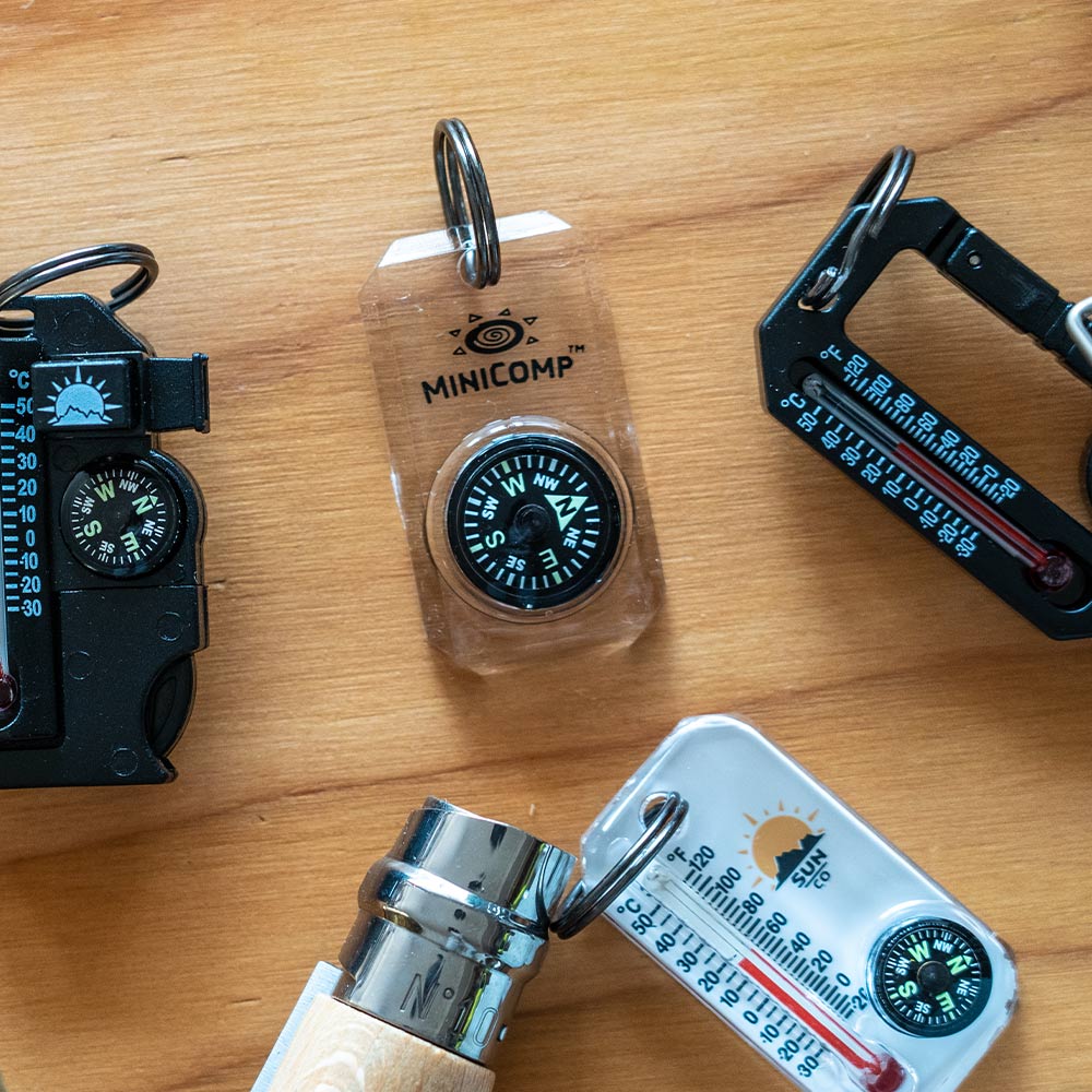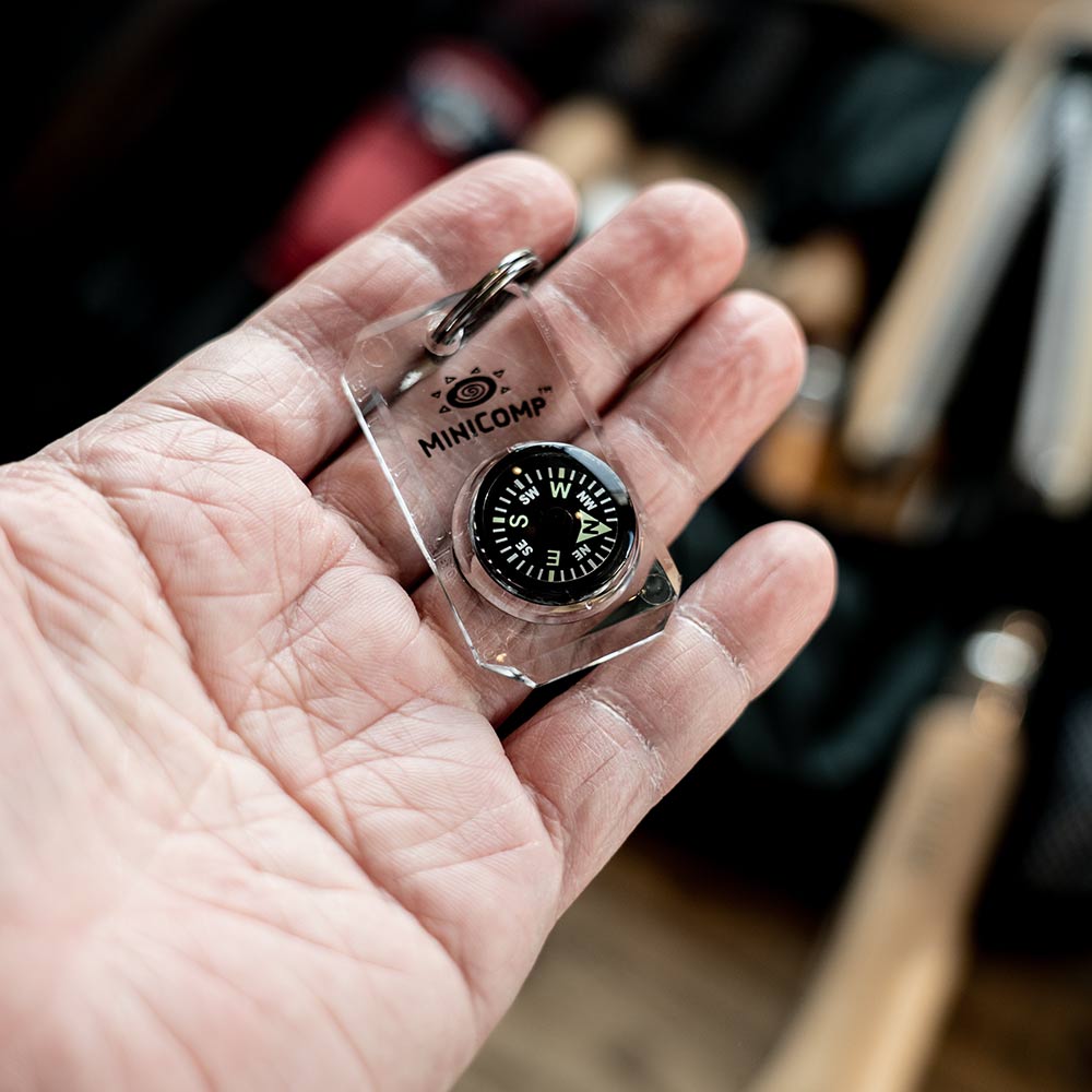 ミニコンポはリキッドフィルドの高級コンパスが組み込まれたキーホルダーです。ジッパータブとキーホルダーに使える便利品です。