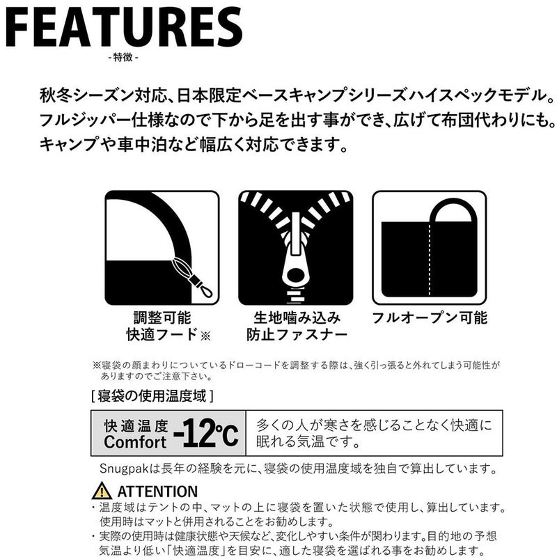 秋冬のシーズンに対応した日本限定モデル 快適使用温度-12度 Snugpak|スリーパーエクスペディション スクエアライトジップ SP95204