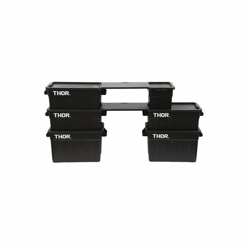 THOR LARGE TOTES WITH LID 53L&75L(共通サイズ)スチール製天板。ブランドロゴ入り。 THORラージボックスの蓋上に置くだけで、テーブルとして使用可能。 ボックス2つに橋渡しすることも可能。様々なレイアウトが楽しめます。 使わない場合はボックス内の仕切り版としても使用できます。