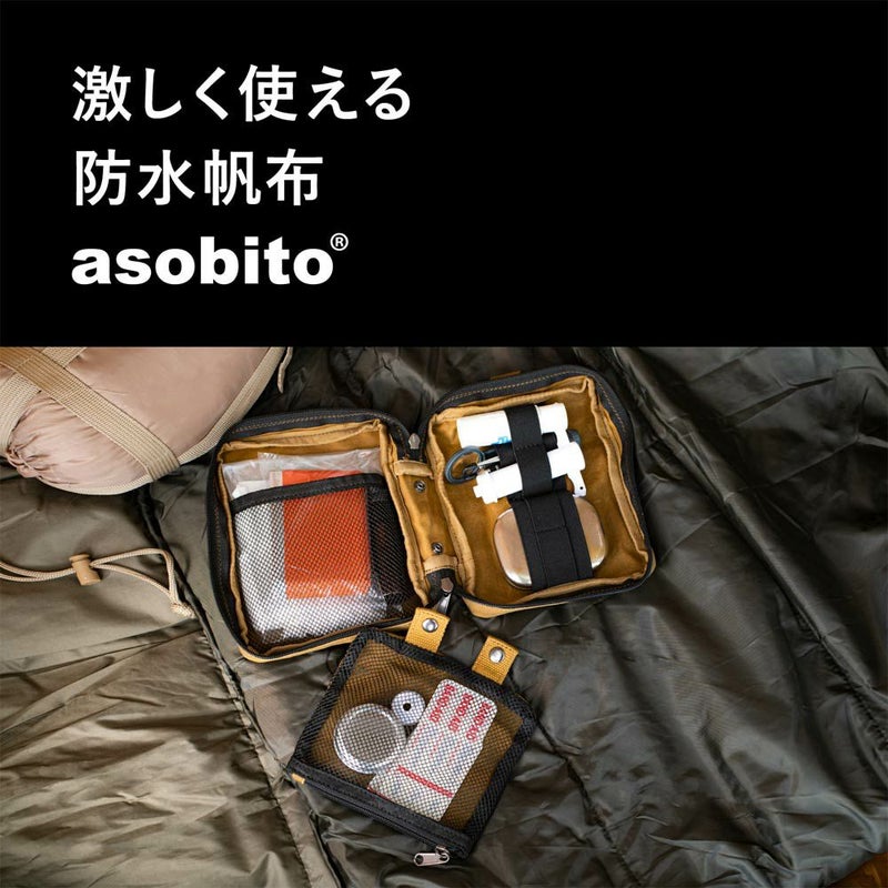 asobitoとは、遊び(asobi)と外(soto)を組み合わせた造語で、アウトドアやキャンプシーンで「あったらイイな」をカタチにするために生まれたブランドです。 素材には、撥水加工を施した防水帆布を採用。アウトドアで激しく使っても、経年変化を楽しみながら長く愛用していただけるアイテムをご提供します。