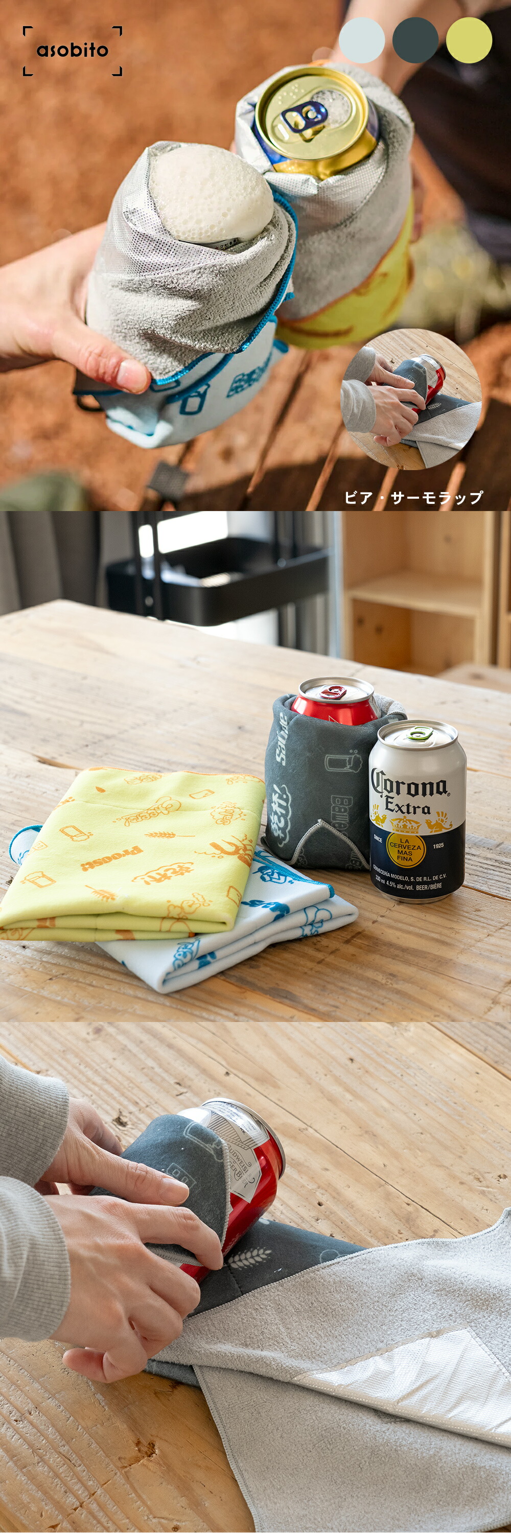 ドリンクやお弁当を包んで保温&保冷ができる新感覚ラップ asobito|ビア・サーモラップ