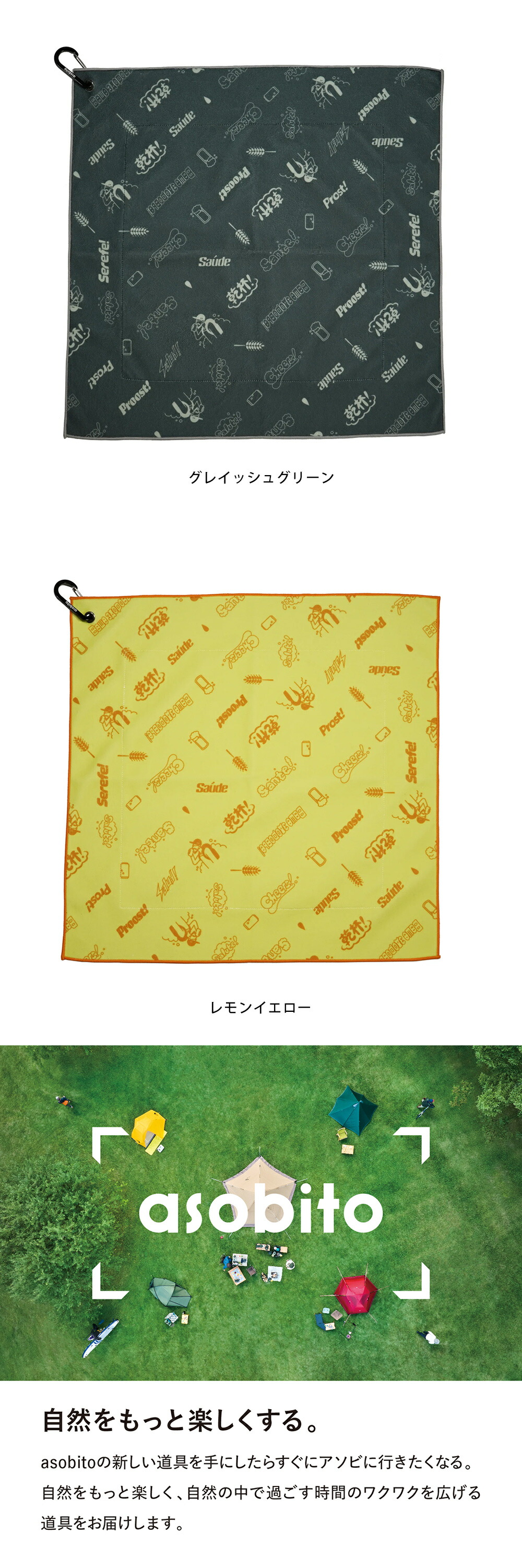 ●asobitoロゴ入りオリジナルカラビナ付き。