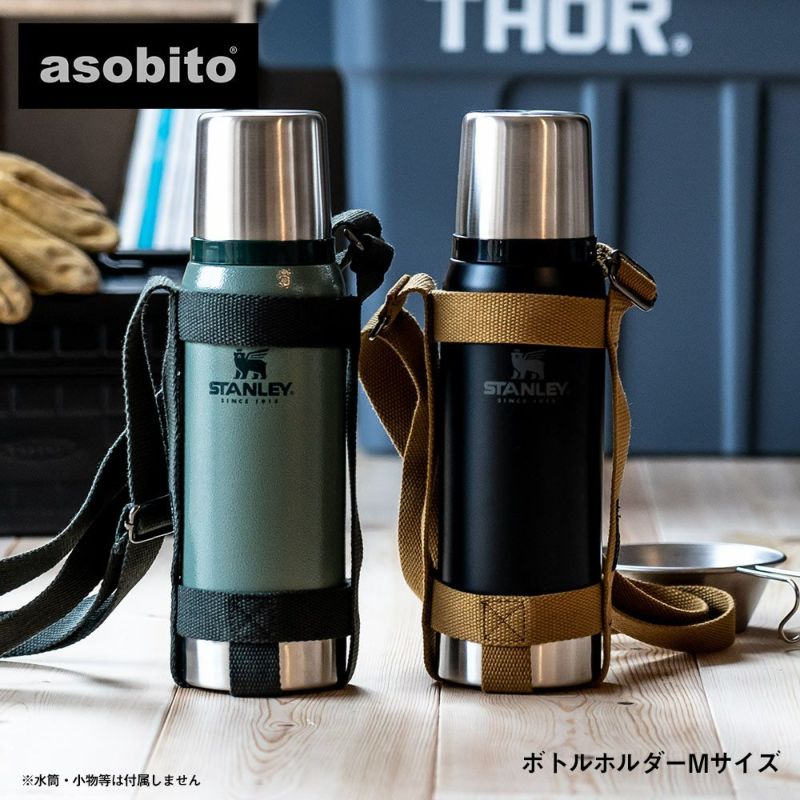 【STANLEYクラシック真空ボトル0.75L】がちょうど入る専用ボトルホルダーが届きました。ショルダーは長さの調整ができ、子供から大人まで安心してお使い頂け、通学時やピクニック、キャンプシーンなど幅広いシーンでご使用いただけます。
