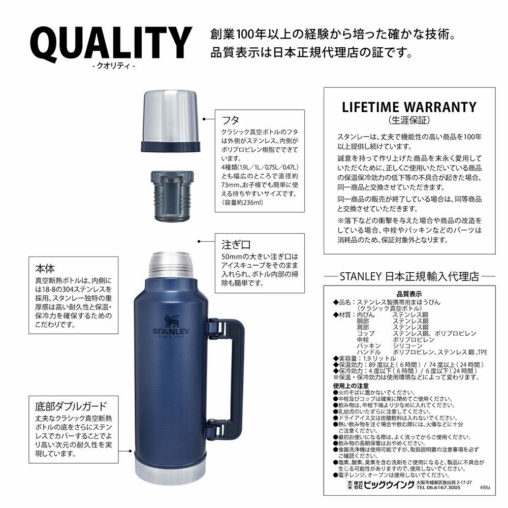 他の画像を見る STANLEYの定番モデル クラシック真空ボトル スタンレー STANLEY 水筒 クラシック真空ボトル 1.9L 新ロゴ ベアーロゴ 2019 1900ml マイボトル 販売価格 ¥ 8,360 税込 在庫切れ 詳細を見る お気に入りに登録する