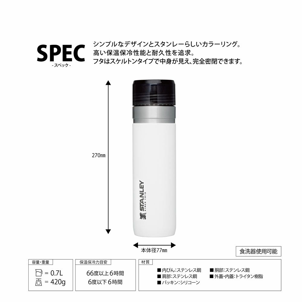 他の画像を見る 人気のホワイトカラー 優れた保温保冷性能 スタンレー STANLEY 真空ボトル ホワイト 0.73L 730ml 新ロゴベア スタンレー 水筒 アウトドア キャンプ マイボトル 販売価格 ¥ 4,950 税込 在庫切れ 詳細を見る お気に入りに登録する