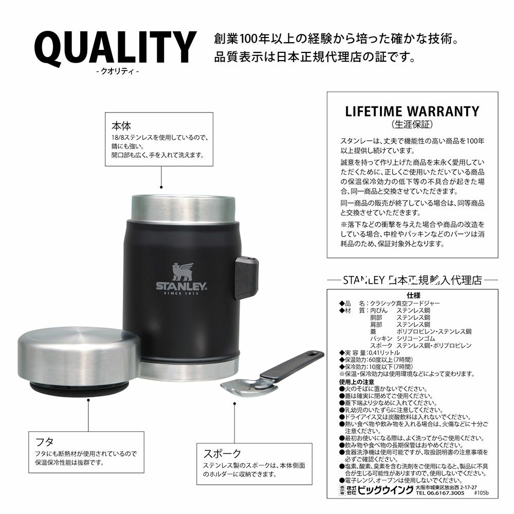 他の画像を見る 優れた保温保冷性能 大きな口径で使いやすいフードジャー スタンレー STANLEY クラシック真空フードジャー 0.41L 410ml 新ロゴベア ランチボックス アウトドア 食洗器使用可 販売価格 ¥ 4,950 税込 詳細を見る お気に入りに登録する